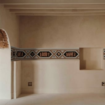 Mériguet et Carrère a sélectionné quelques-unes des plus belles couleurs de sa palette pour mettre au point sa première collection de papiers peints. Col-vert, Organza, Abysses... s'accordent et se mêlent dans un jeu de rayures et de motifs graphiques. Ce revêtement mural de fabrication traditionnelle est décliné en 8 dessins et 6 harmonies colorées mis en scène par Mériguet et Carrère.