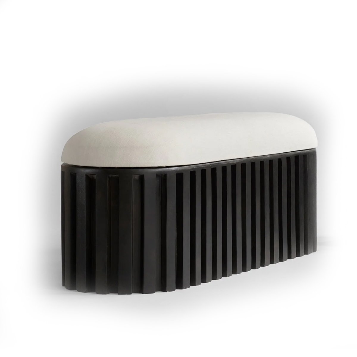 Avec ses lignes sculptées et son allure graphique, l’assise Tribu est un banc inspiré de l’architecture monumentale. Son aspect strié, creusé dans une structure dense, rappelle les colonnes d’un édifice ancien. L’assise en lin souligne le contraste entre matière brute et textile délicat. Cette pièce signée 101 Copenhagen révèle un sens aigu de l’équilibre maîtrisé.