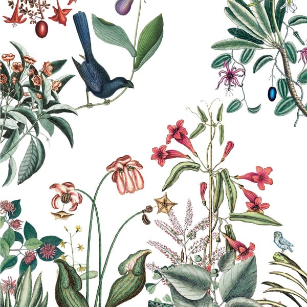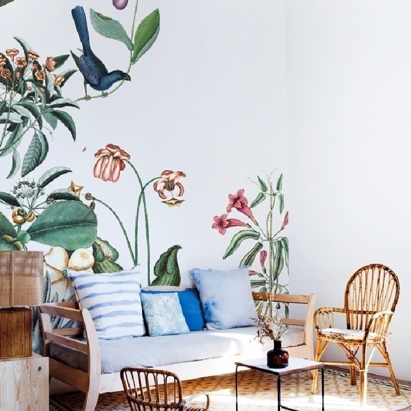 Lumineux et coloré, Bahamas est un tableau exotique composé d’oiseaux et de plantes endémiques du pays. Les oiseaux se mêlent aux baies sauvages, les fleurs s'épanouissent en s'élevant librement sur les murs. Ce décor panoramique s'inspire des planches de botanique du 18ème siècle en offrant un nouveau regard sur ces merveilles oubliées.