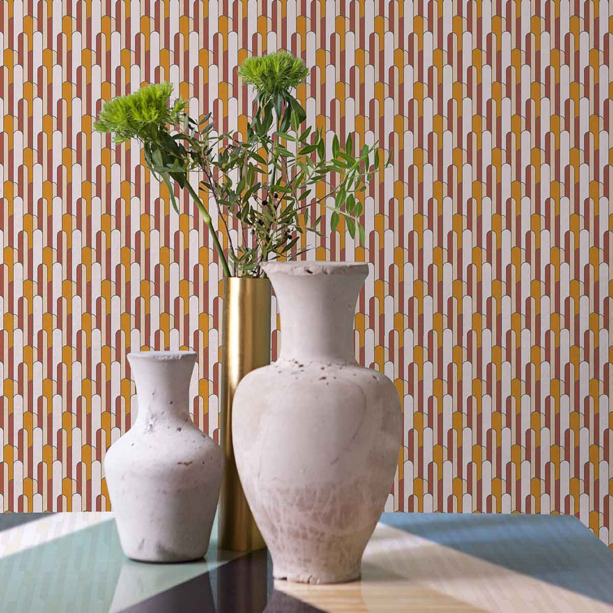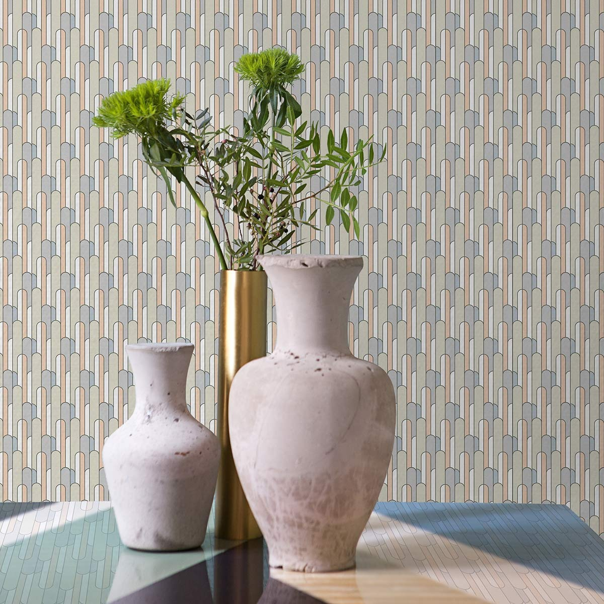 Le papier peint Deco figure dans la collection Patricia Urquiola éditée par la marque Tres Tintas. Son motif présente une superposition de formes géométriques arrondies qui rappelle de petites tuiles. Cette composition convient parfaitement dans un décor minimaliste. Avec son design moderne, c’est le revêtement idéal pour personnaliser les murs de votre salle de séjour.