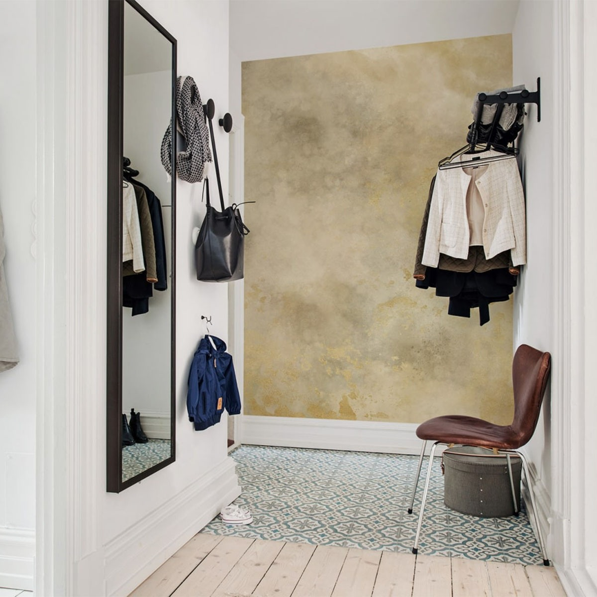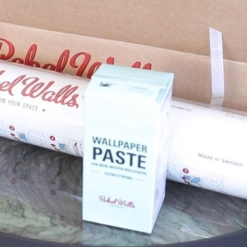 Ce papier peint est un intissé, ce qui rend la pose plus facile. Nous recommandons une colle pour papier peint intissé qui doit être appliquée sur le mur. Voir notre tutoriel video.