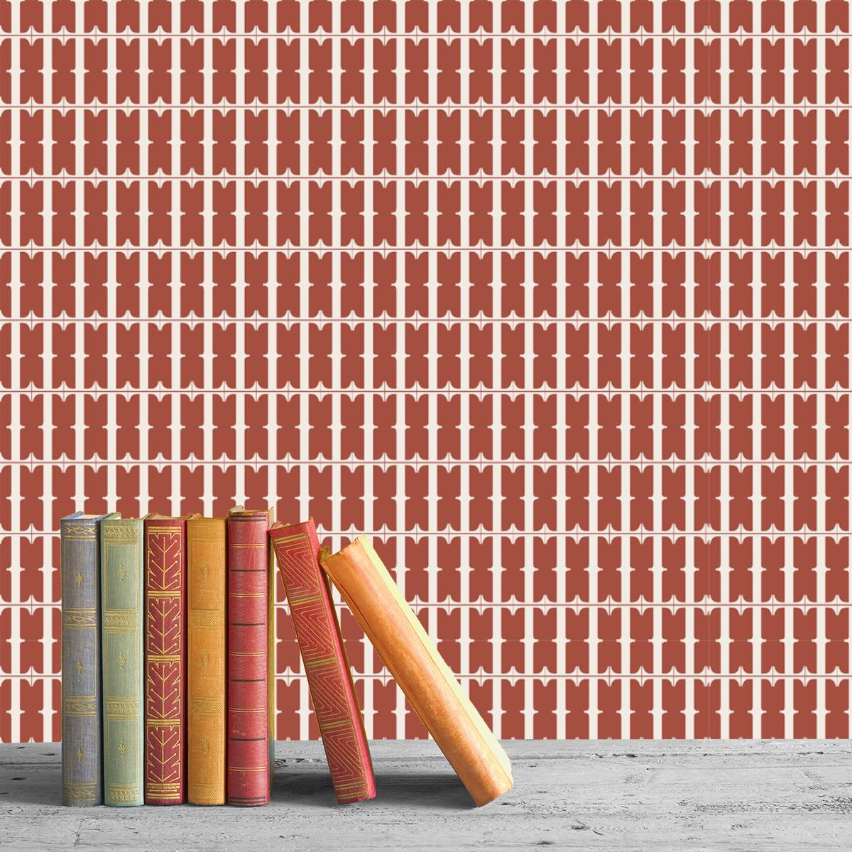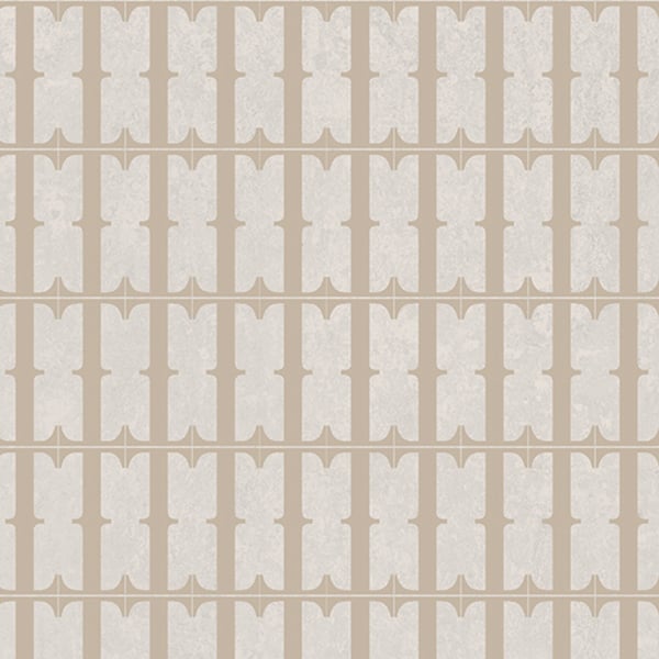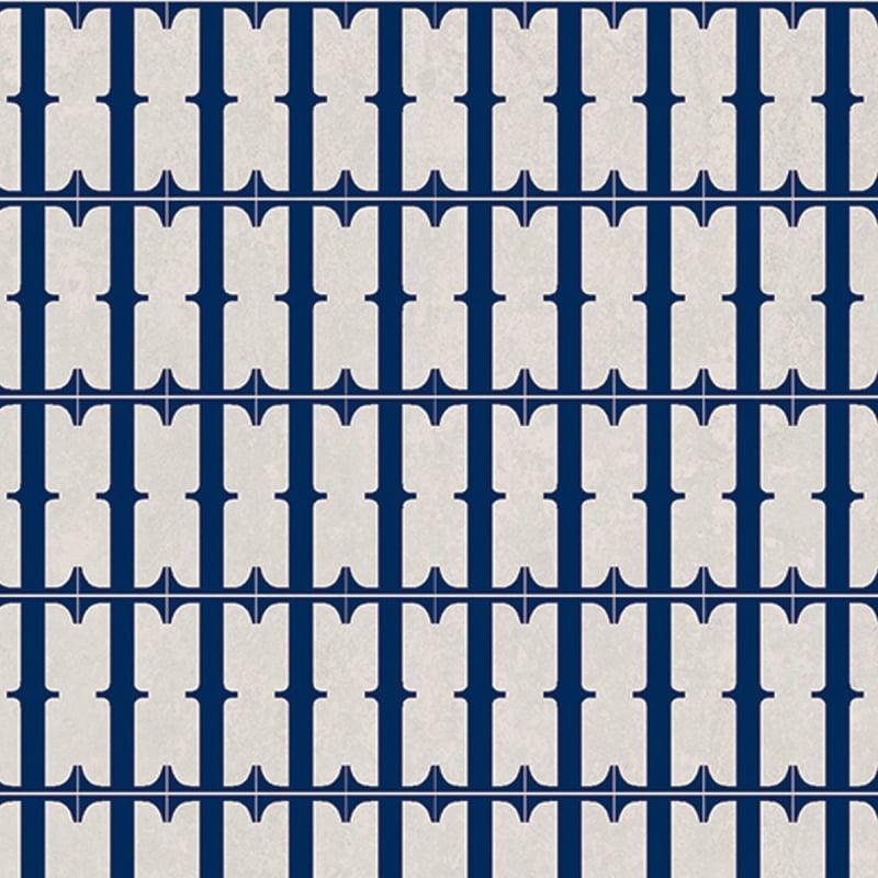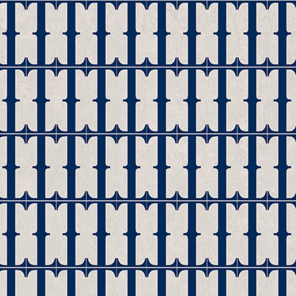 Carrie Van Hise reprend les curieuses décorations présentes sur le bâtiment moderniste Casa Blaua à Girona en Espagne dans le design du papier peint Blaua Macro. La designer alterne entre des rayures claires et des formes curvilignes colorées, pour ensuite les décorer d'un ruban de vagues. Ce détail rappelle le fond de carreaux utilisé sur le panneau Blaua.