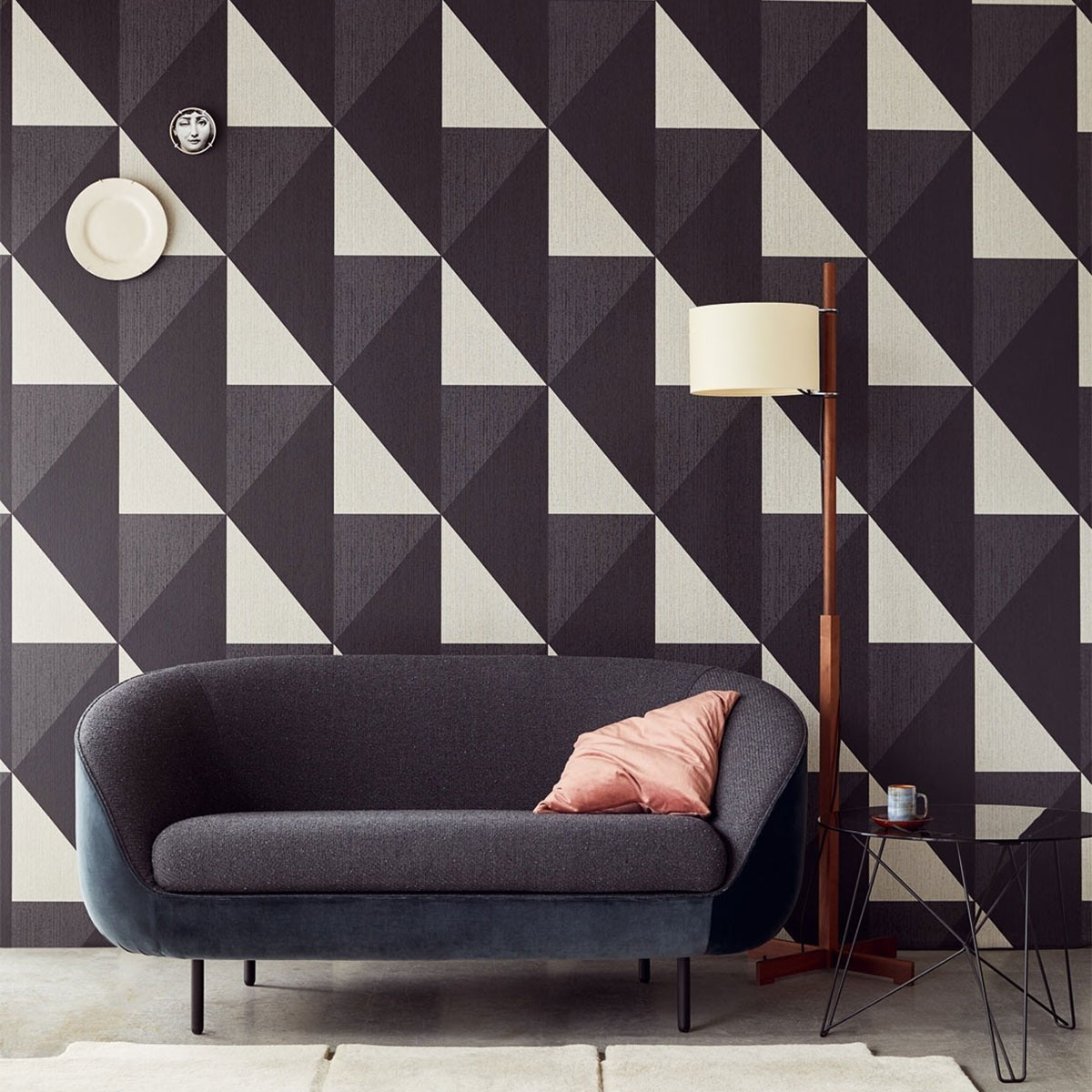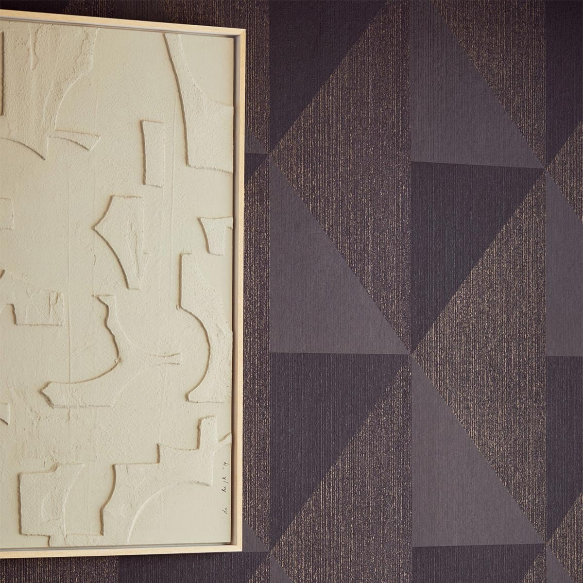 The Diamond wallpaper features a sumptuous diamond centered on a background covered with fine stripes with a relief effect. The above-mentioned motif is composed of various triangles arranged in perfect symmetry. Each figure adopts a different color to bring a note of contrast and a rhythmic look to the whole model.