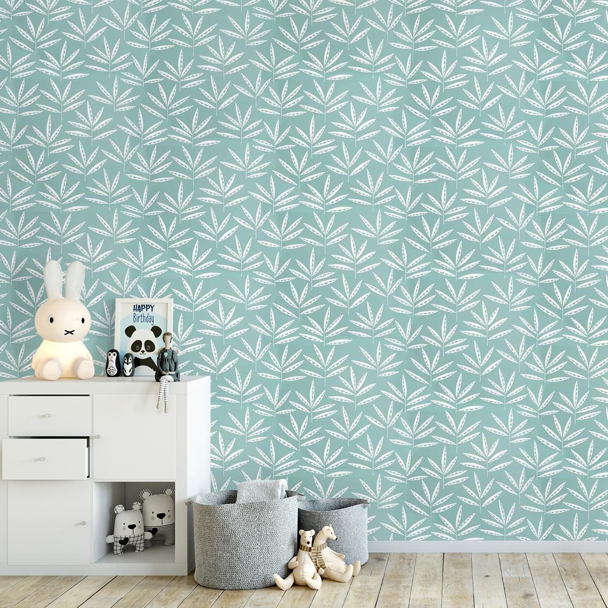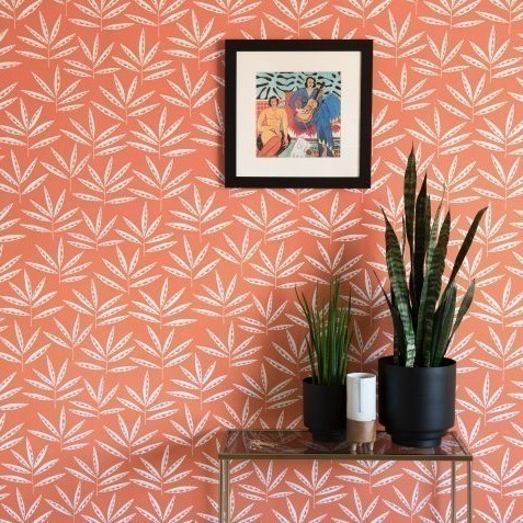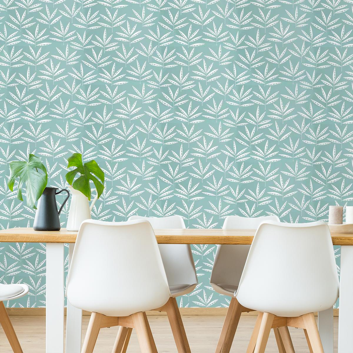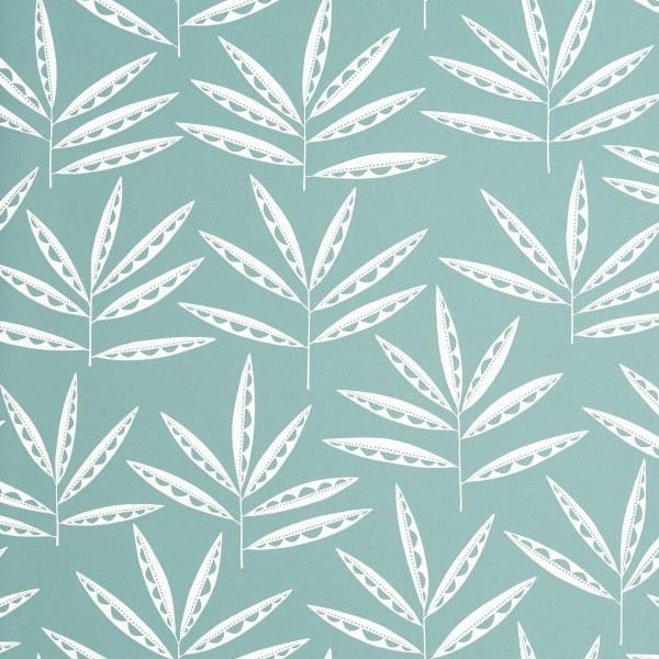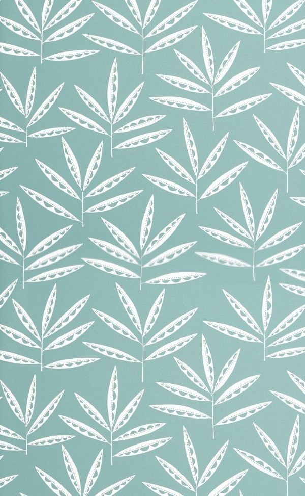 Disposés à la manière de feuilles palmées, des pois mangetout stylisés viennent prendre la pose dans ce papier peint imaginé par la maison MissPrint. Ces éventails de cosses rayonnent d'énergie avec une allure graphique et contemporaine donnant la part belle à ce végétal peu commun en décoration.