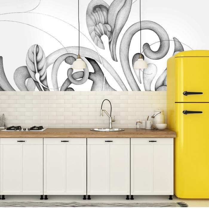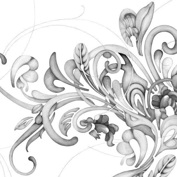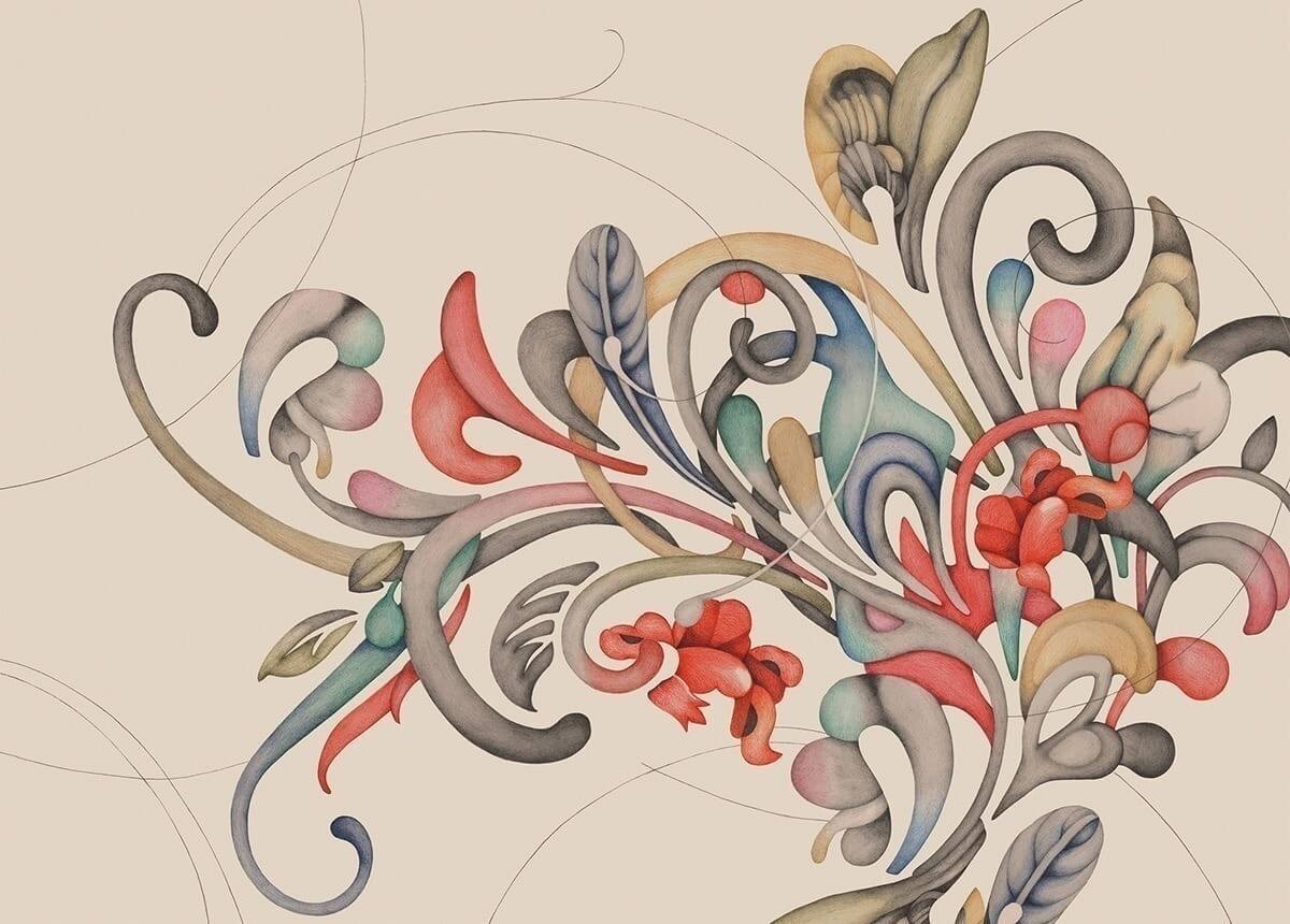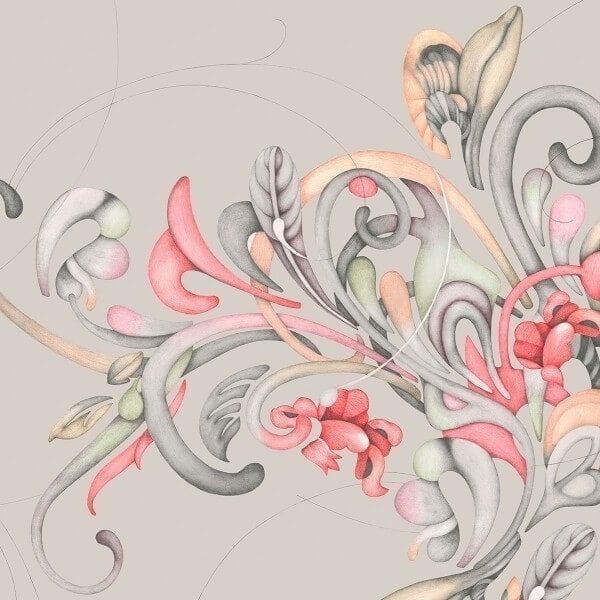 De longues courbes élancées sur un fond uni composent le motif du papier peint Romance de Tres Tintas. Ces figures abstraites accompagnées de tracés curvilignes évoquent l'apparence d'un bouquet floral de tons neutres. Elles mettent également en avant des nuances accentuées par un effet d'estompage.