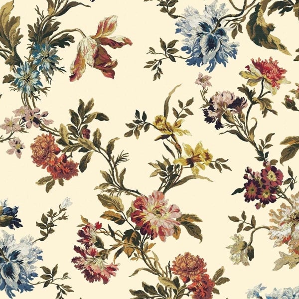 Des jonquilles, des chrysanthèmes, des primevères et d’autres fleurs dessinées dans des couleurs naturelles composent le motif du papier peint Rosetta. Inspiré d’un jacquard de soie français du XVIIIe siècle, ce design floral conçu par House of Hackney apporte une touche de romantisme.
