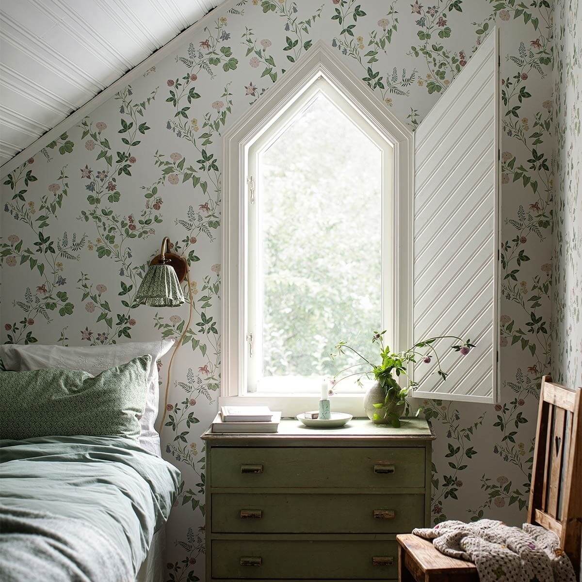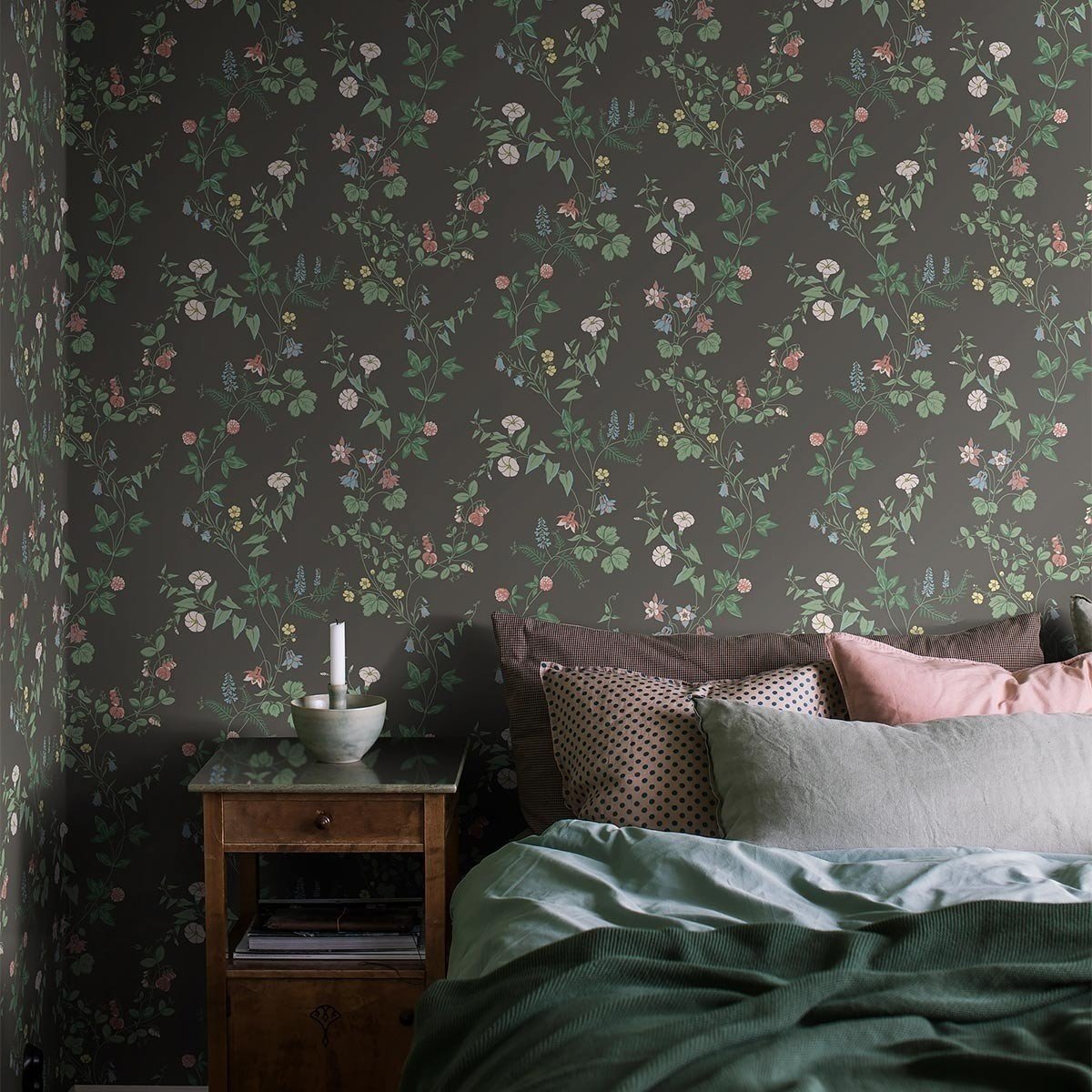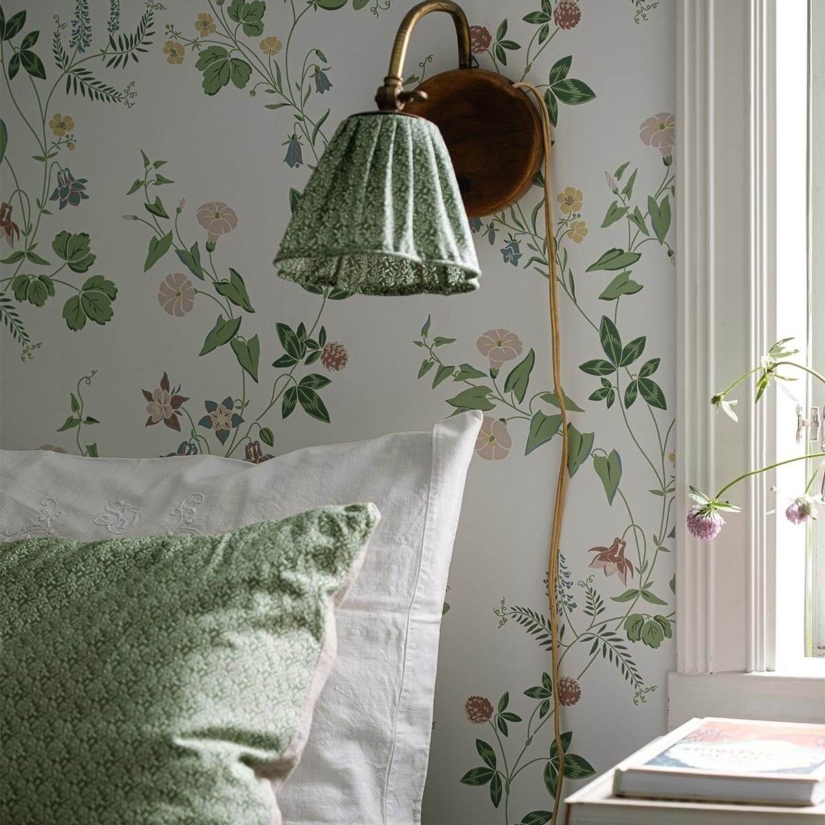 Le motif floral de Midsummer Eve est inspiré d’une tradition suédoise consistant à placer des fleurs sous l’oreiller pour rêver de son futur amour. Il met en avant quelques daturas et célandines avec des plants divers dans des couleurs naturelles sur un fond uni. Imprimé avec une technique d’impression traditionnelle, ce revêtement mural apporte une touche romantique.