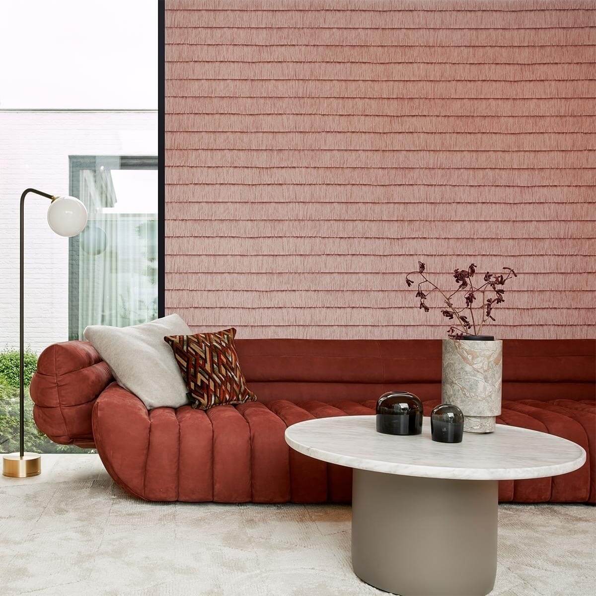Festif, le revêtement Shiver de Arte est inspiré des robes charleston des années 1920. Des rangées de franges légèrement irisées composent le motif de ce papier peint. Un jeu d’ombres et de lumière apportent l’illusion du volume. L’effet textile réaliste de cet intissé donne un côté luxueux aux espaces.