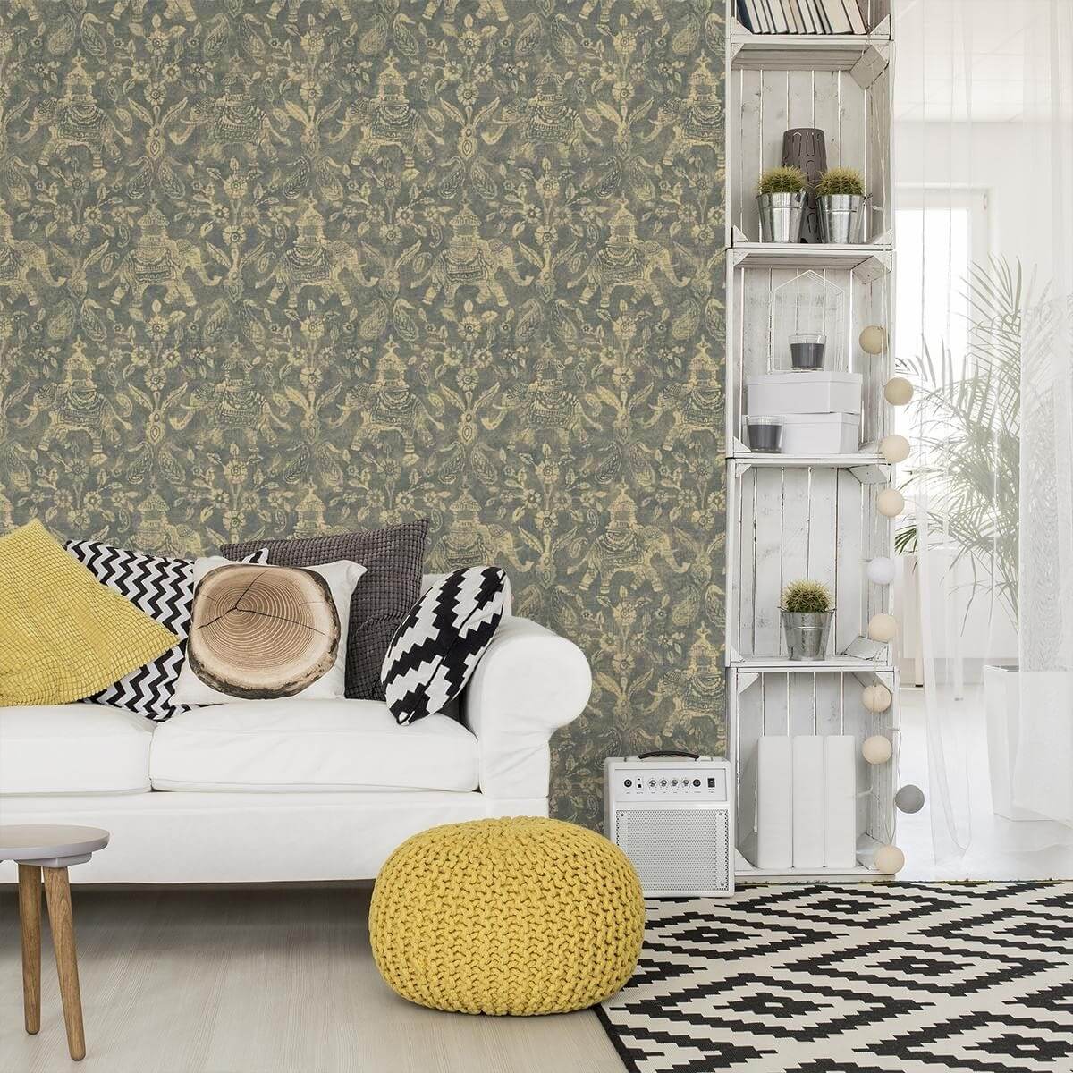 Comme vieilli par le temps, le motif du papier peint Tantor créé par Arte présente un dessin traditionnel oriental. Ce revêtement mural donne l’impression d’assister à un évènement festif, on distingue des éléphants décorés et des fleurs. Tantor apporte de l’exotisme et du caractère aux espaces.