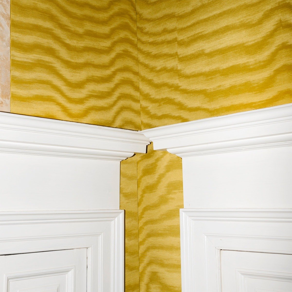 Avec Amoir Fou, Dedar se réapproprie le moiré traditionnel. Le motif subtil et élégant se raccorde librement. Des dessins apparaissent aléatoirement en fonction des mouvements imprimés de la main de l’artisan lors de la fabrication. L’aspect de ce revêtement mural donne l’impression d’être dans un cocon chaleureux.