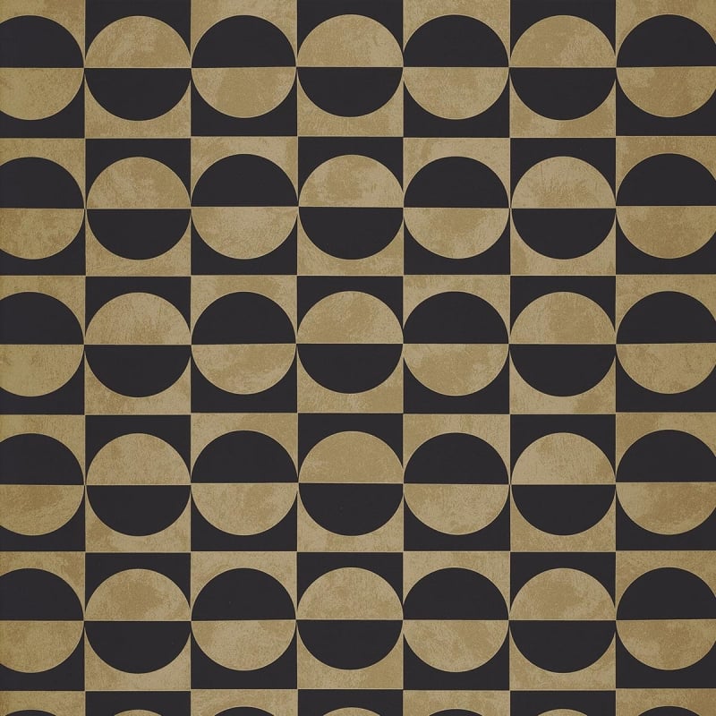 Des demi-cercles formant un damier bicolore composent le motif du papier peint Circles. Le jeu de teintes dorées et neutres crée une image chatoyante avec un contraste prononcé. Casamance propose cette œuvre brillante dans des nuances neutres et sombres.
