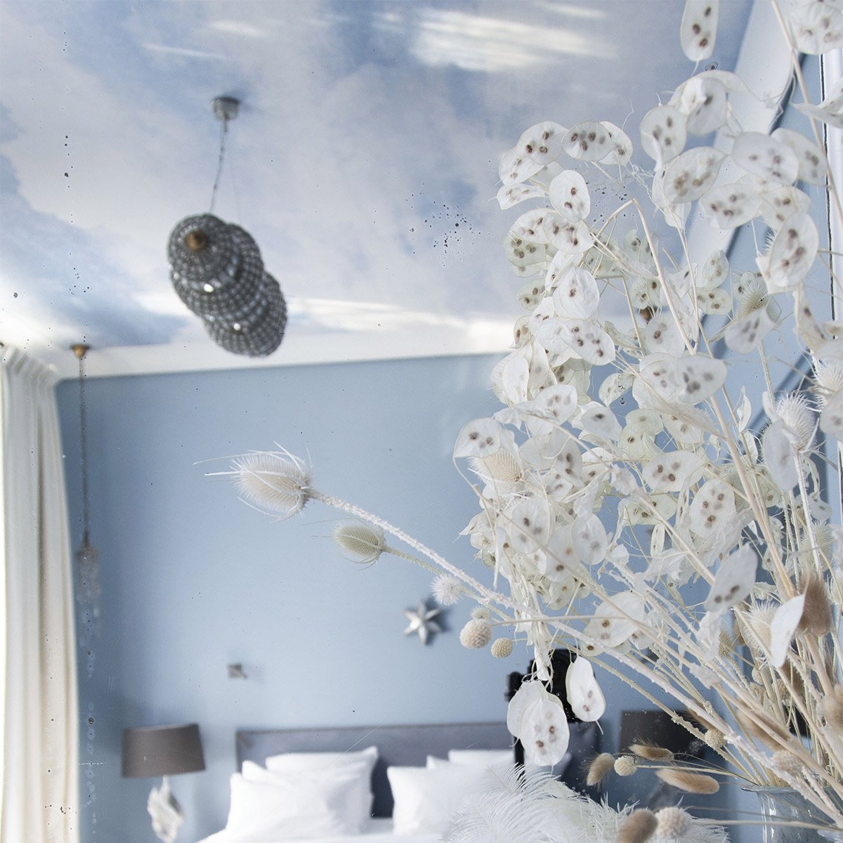 Décoratrice et designer américaine, Stella Candente représente un morceau de ciel à travers le motif du panneau Nuages. De larges nuées dessinées dans des notes de couleurs froides composent ce dessin paisible. Des nuances colorées et un aspect brossé donnent une impression de texture à l'ensemble. Il apporte une touche de sérénité et de fraîcheur aux espaces.