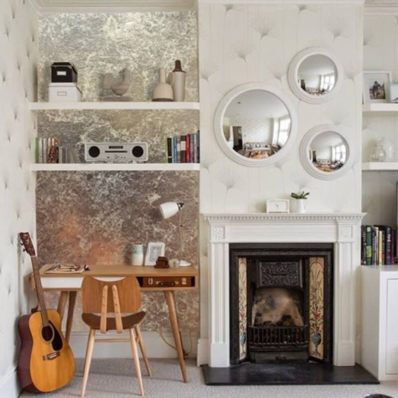 Finement réalisé à la main à partir de feuilles de laiton, d’aluminium et de cuivre, le magnifique papier peint Eclat de Mériguet-Carrère présente un motif irrégulier. Des lignes et des tâches aléatoires nuancées habillent la surface du revêtement. Imaginé dans trois coloris métallisés différents, son aspect éclatant joue avec la lumière donnant des effets mats et brillants. Ces reflets apportent une impression de texture à l’ensemble.