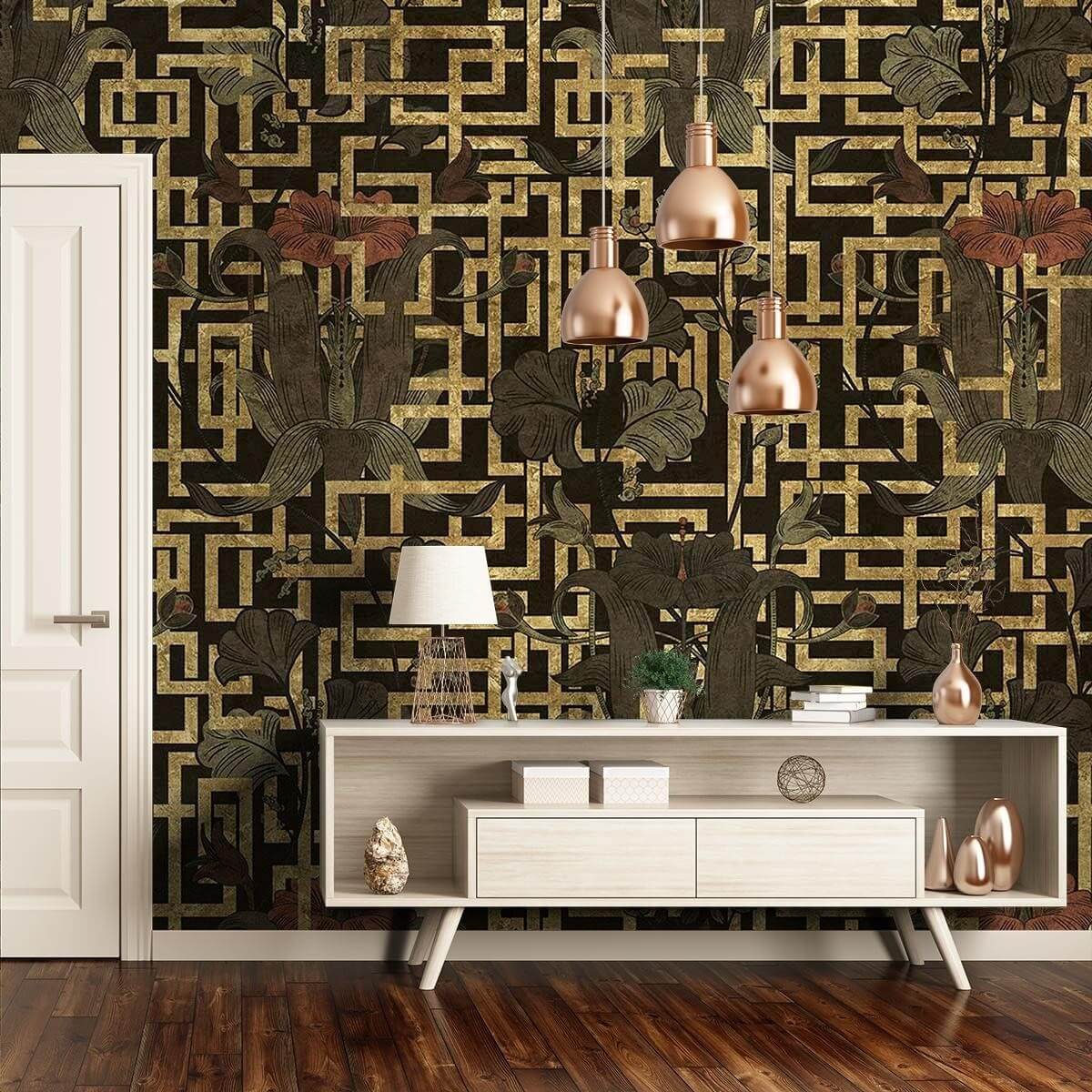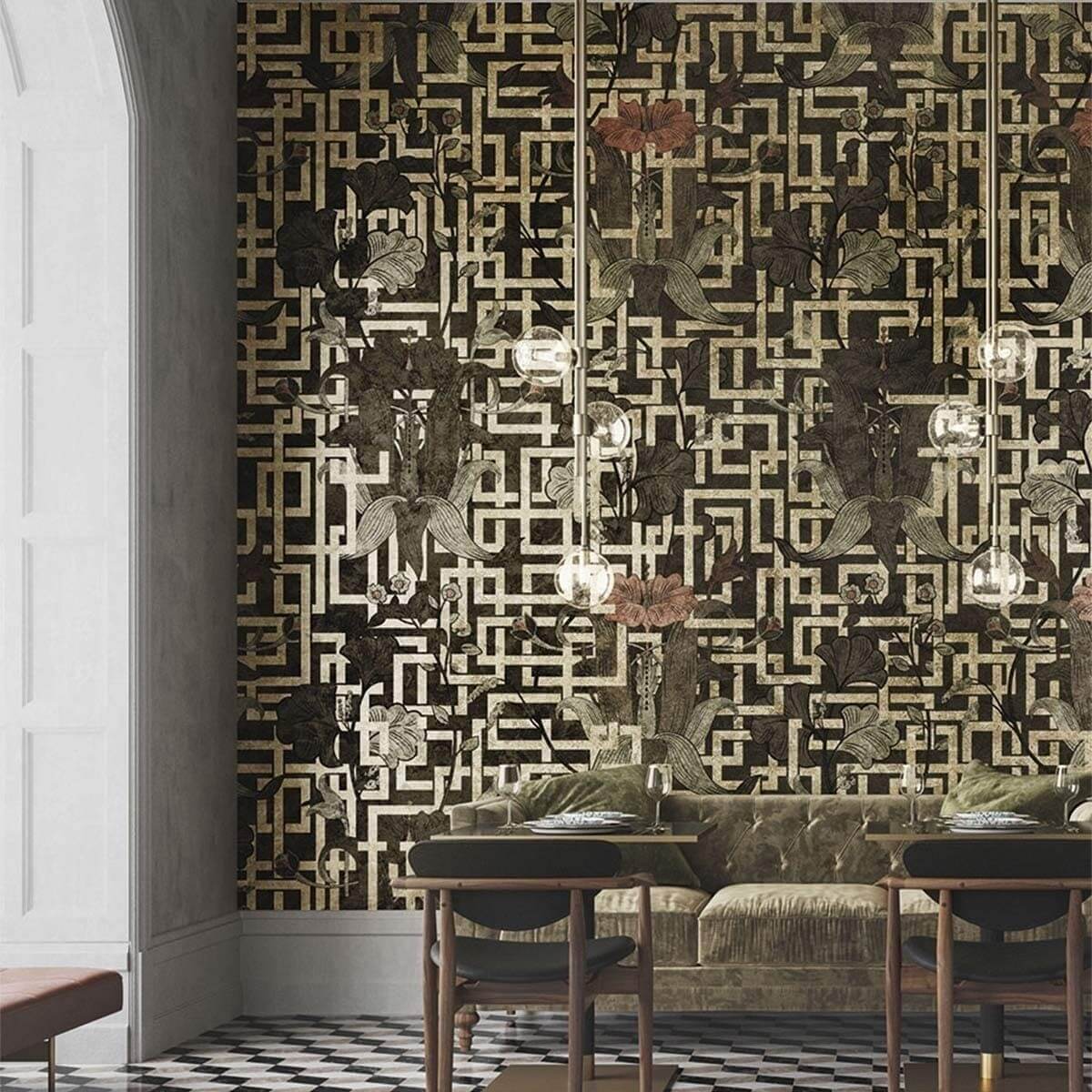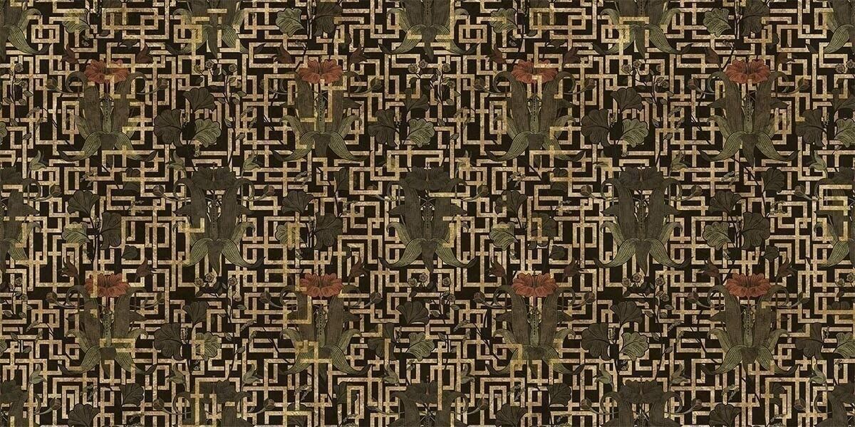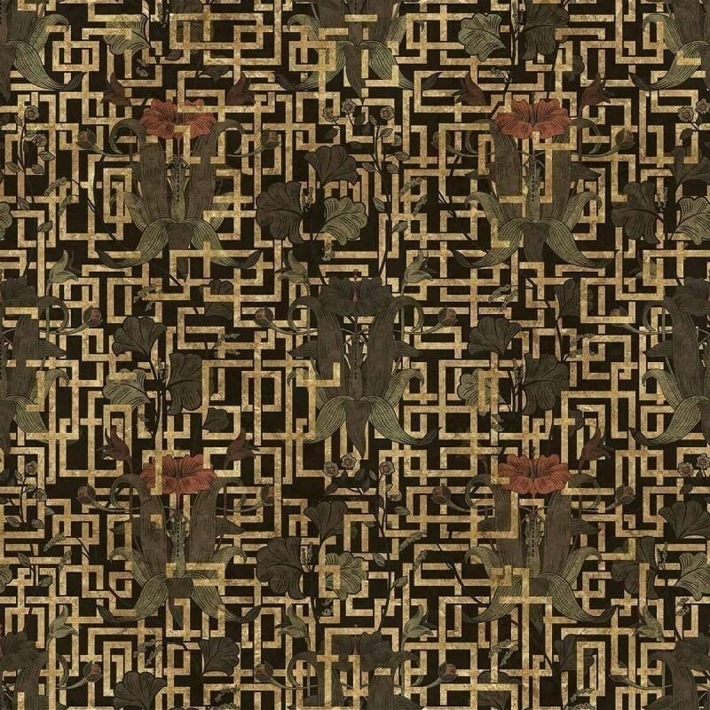 Nouveau est une création sophistiquée signée Inkiostro Bianco. Elle arbore un large treillis métallique de rectangles imbriqués. Cette grille décorée de fleurs rampantes et ornementales confère une note à la fois luxueuse et romantique à tout espace de vie. Ce revêtement mural vinyle issu de la collection Goldenwall est enrichie en pigments dorés.