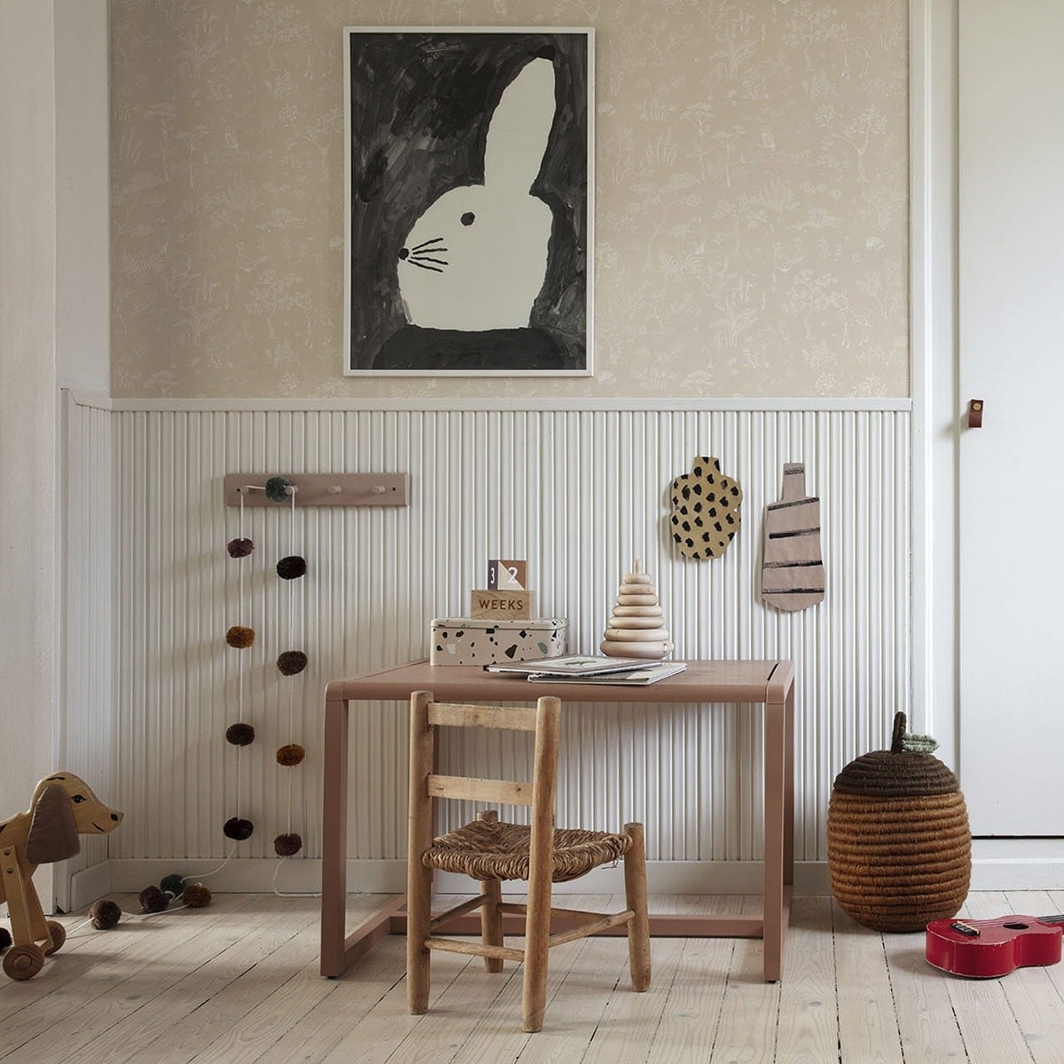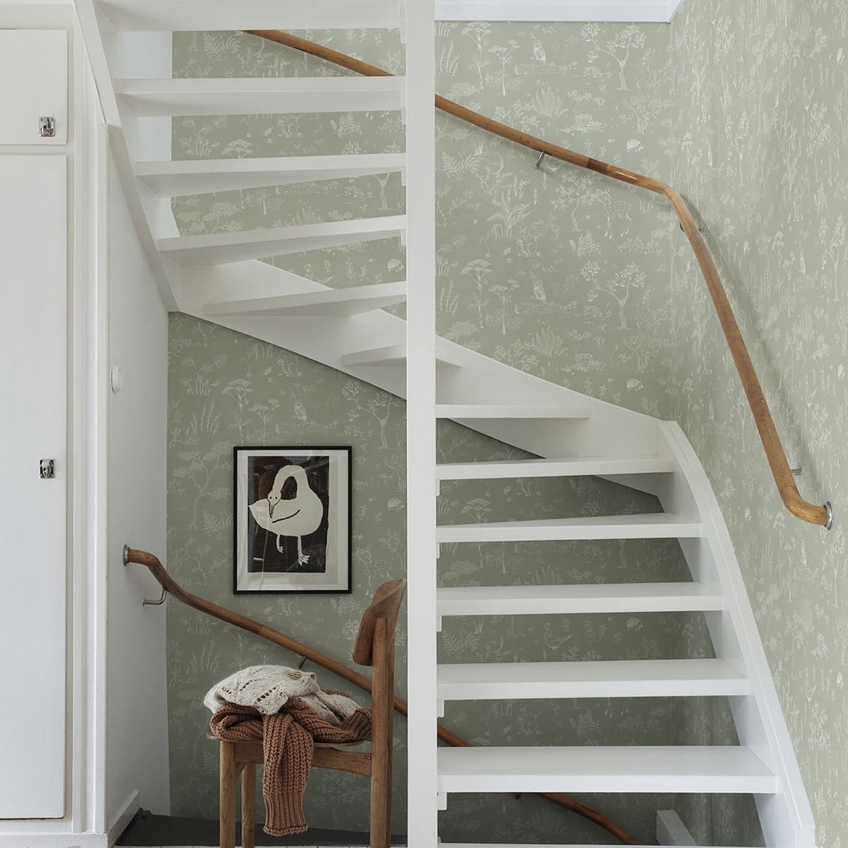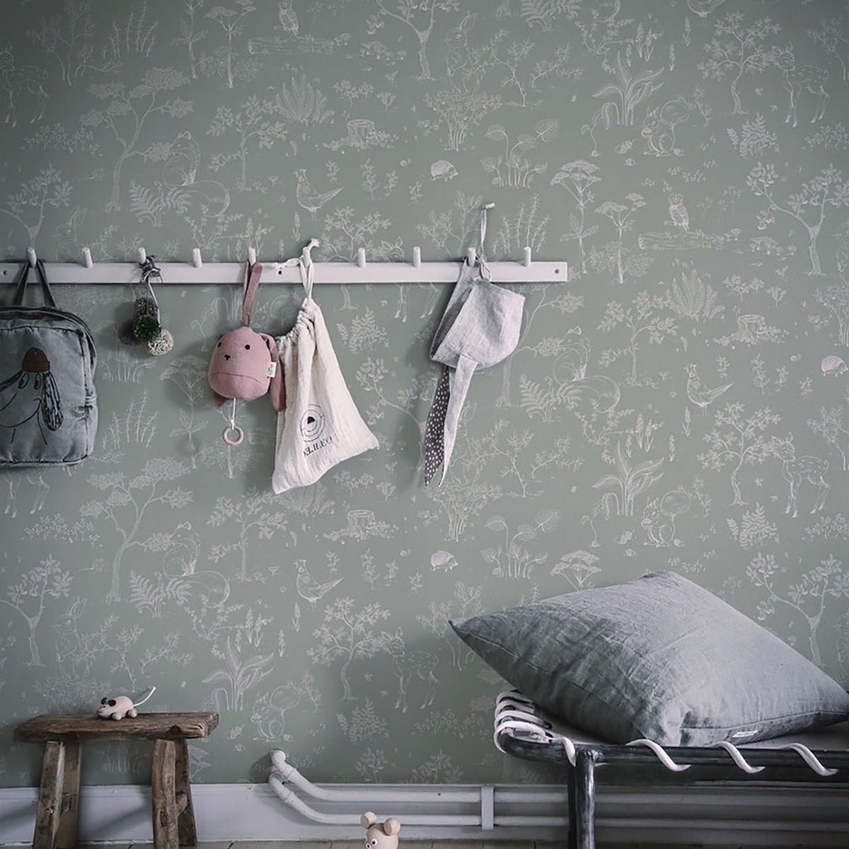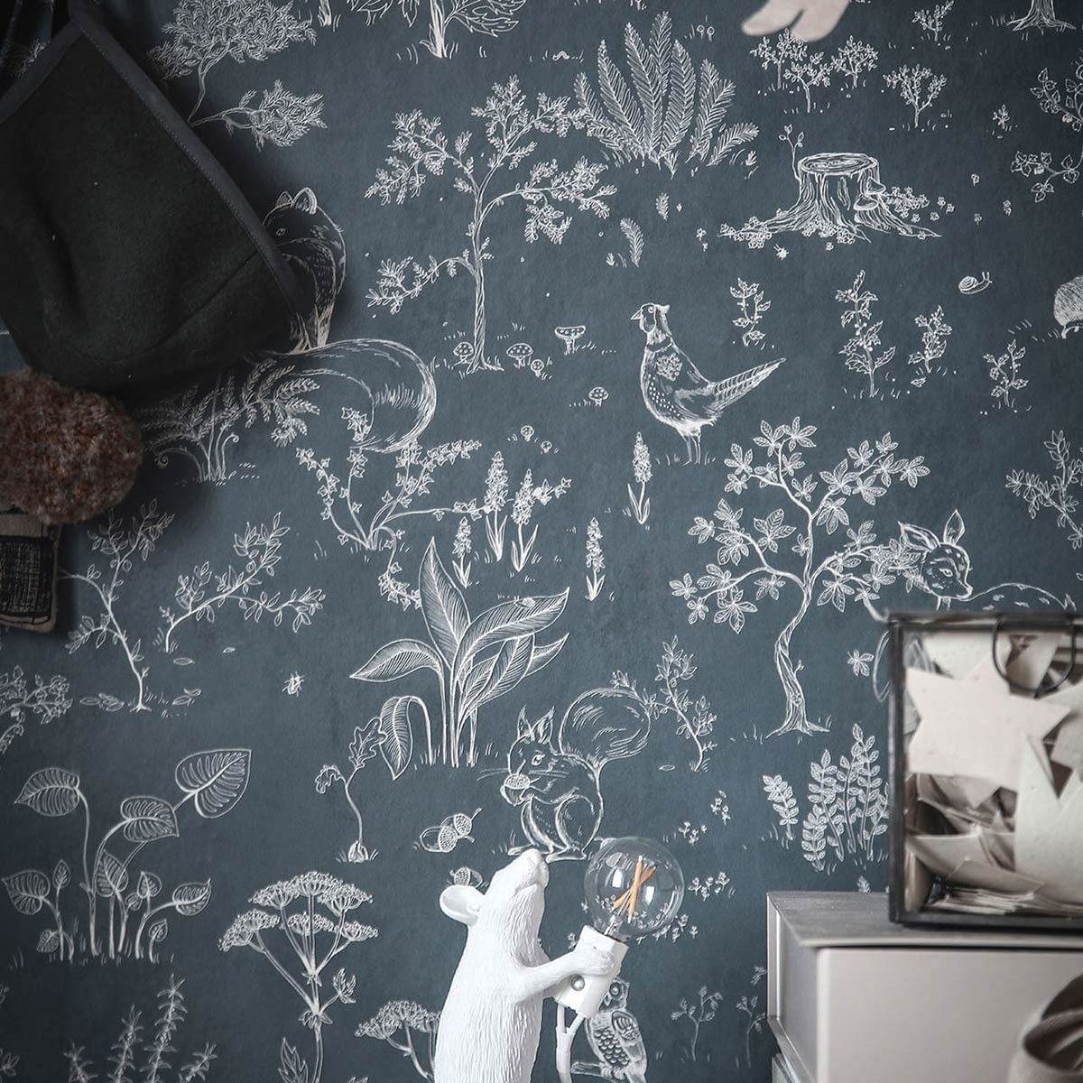 Le motif du papier peint Hollie présente des écureuils et des faons dessinés au milieu de plantes et d’arbustes variés. Cette illustration tracée dans une nuance claire contraste avec son fond uni. Créée par la designer suédoise Sara Bergqvist, cette décoration murale au style scandinave se décline dans des couleurs douces, neutres et vives.