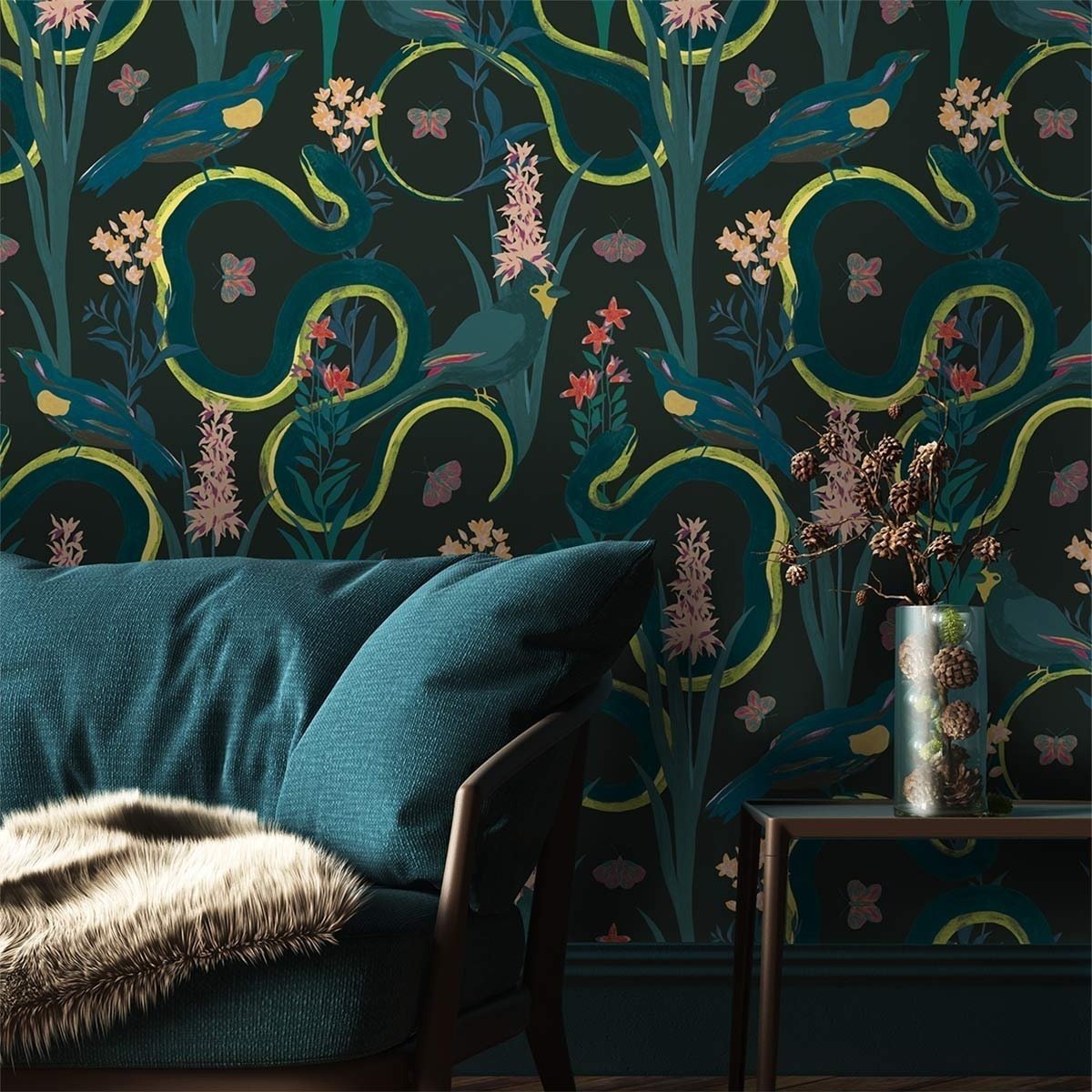 Tenue de Ville rend hommage à un chapitre de la Genèse dans la Bible à travers le motif du panneau Eve. Il arbore des fleurs et des oiseaux posés sur des serpents. Ces scènes présentées sur un fond uni adoptent une palette de couleurs naturelles avec des tons adoucis, neutres et prononcés. Cette création offre un design à la fois fantaisiste et classique.