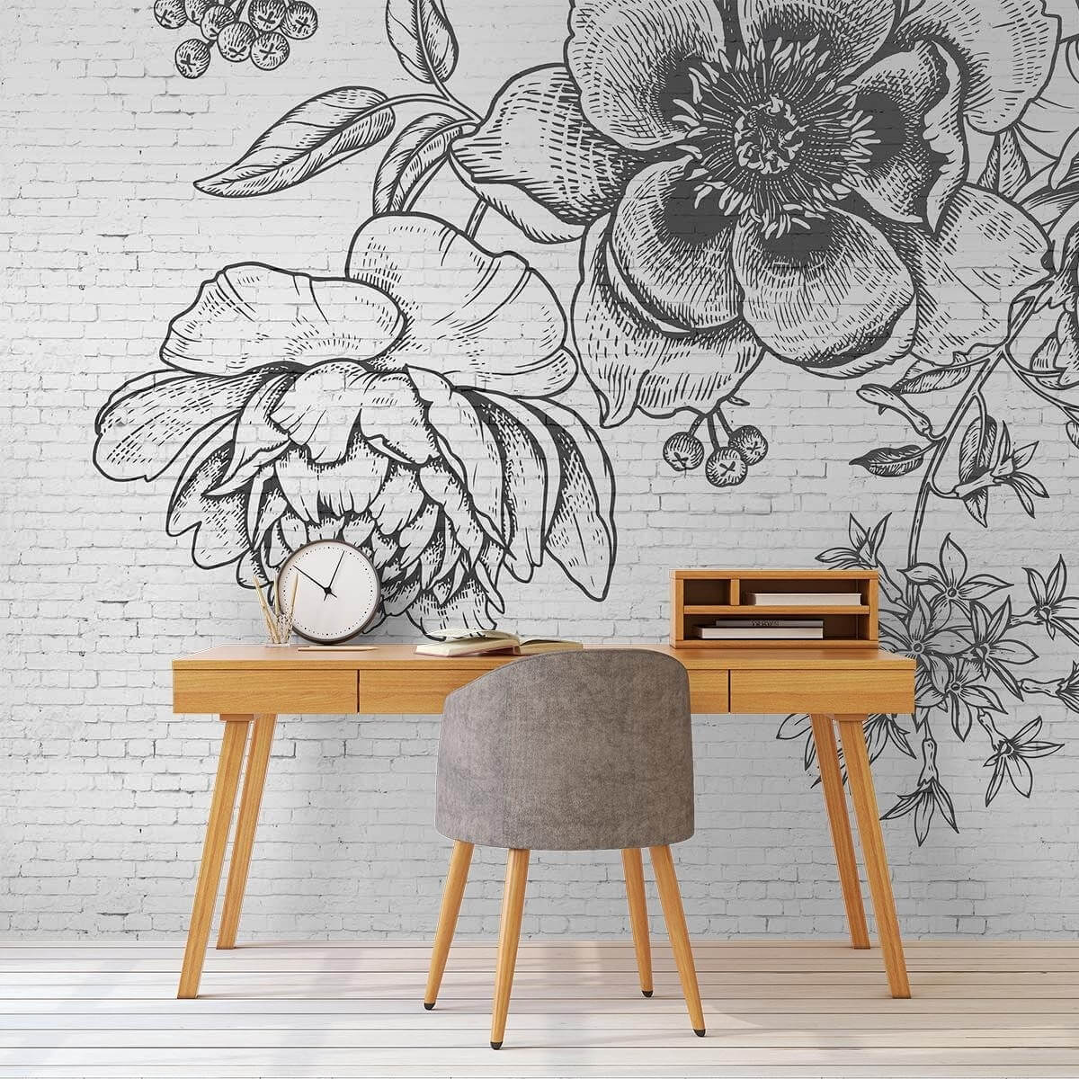Bring a romantic note to your living spaces through the Black Flower Brick Wall panel. As if drawn by hand, the design highlights large poppies, peonies and buds with elegant lines. Designed by Les Donimotiers, this two-tone pattern contrasts with the light brick background.