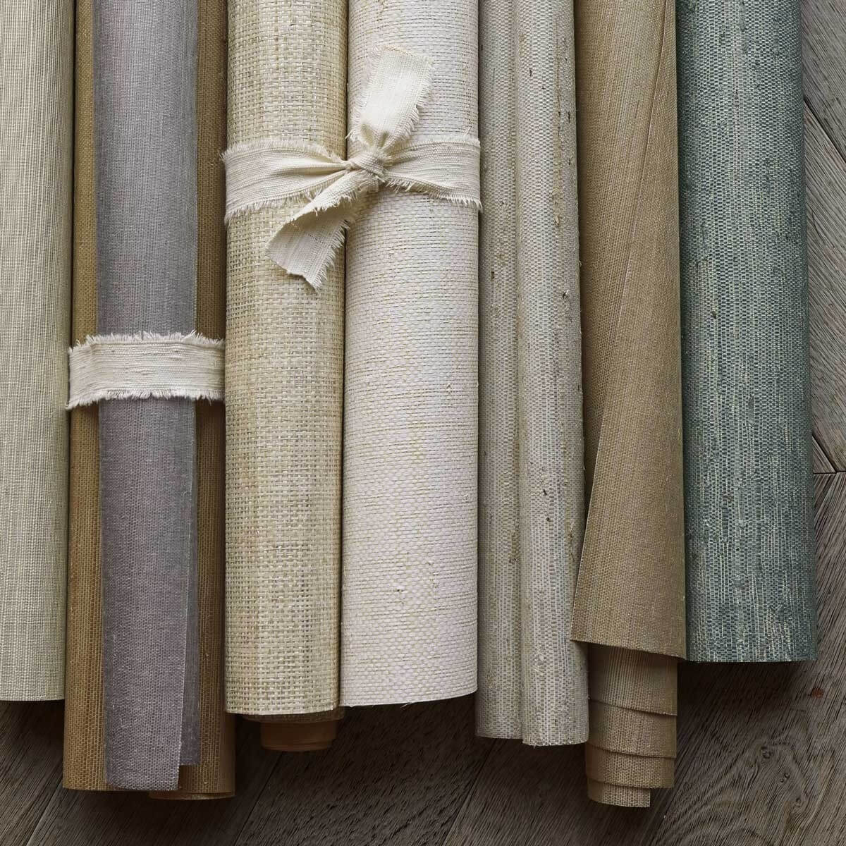 Colefax and Fowler propose le revêtement mural faux uni Seagrass. Fait en mélange de sisal tissé et de coton, ce décor mural évoque l’aspect d’une toile de ramie légèrement brillante. Ce modèle se décline dans une palette de couleurs naturelles.