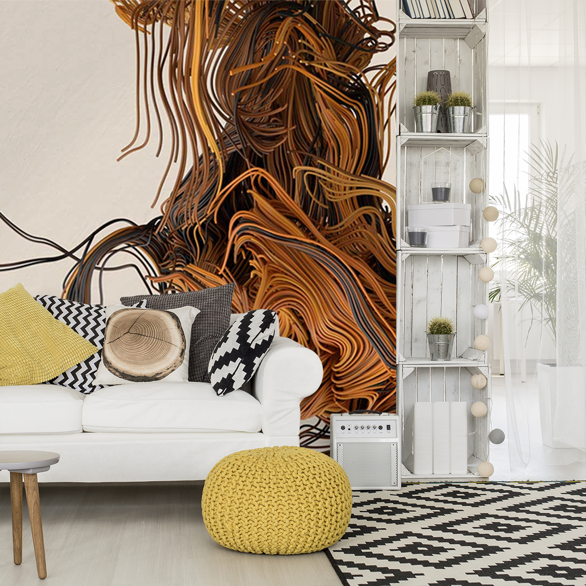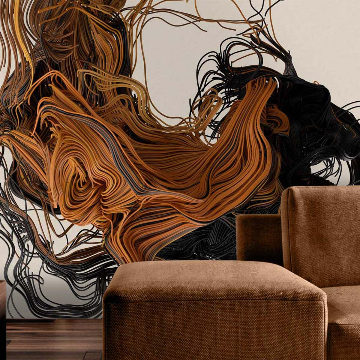 Le designer français Nicolas Berger offre une représentation abstraite à travers le panneau Lave de Volcan. Des tracés curvilignes et ondulés forment des zigzags sur un fond uni. Ils adoptent une palette de couleurs chaudes et sombres, évoquant les teintes d’une coulée de lave. Cette décoration murale est signée Artwallz.