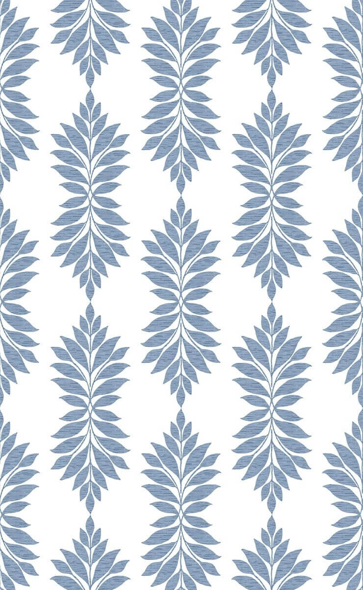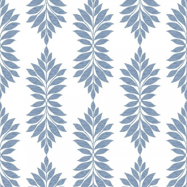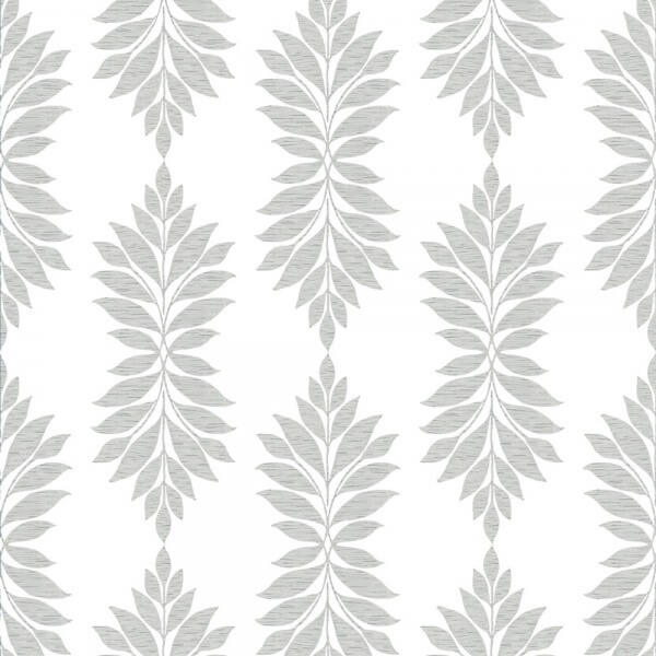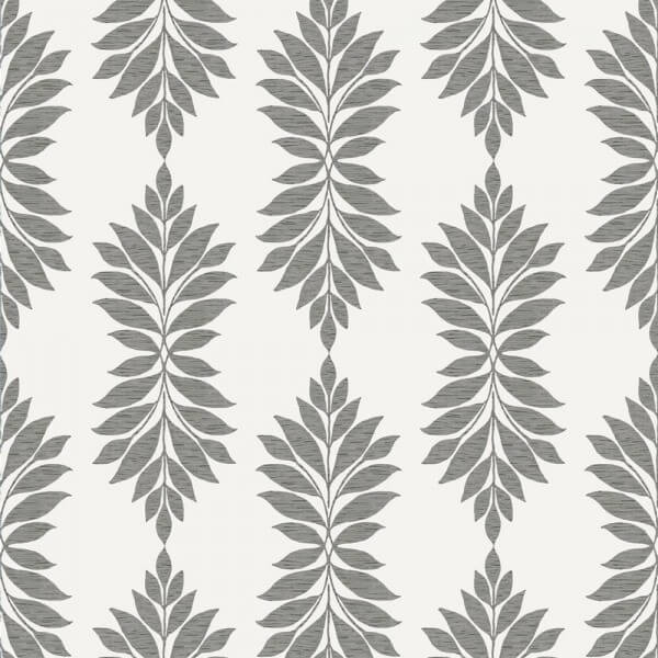 Des ramures dessinées avec des feuilles curvilignes et monochromes composent le motif végétal bicolore du papier peint Broadsands Botanica de York Wallcovering. Ces plants ornés de stries fines contrastent avec le fond uni de teinte claire. Cette décoration murale confère un style à la fois romantique et rafraîchissant aux intérieurs.