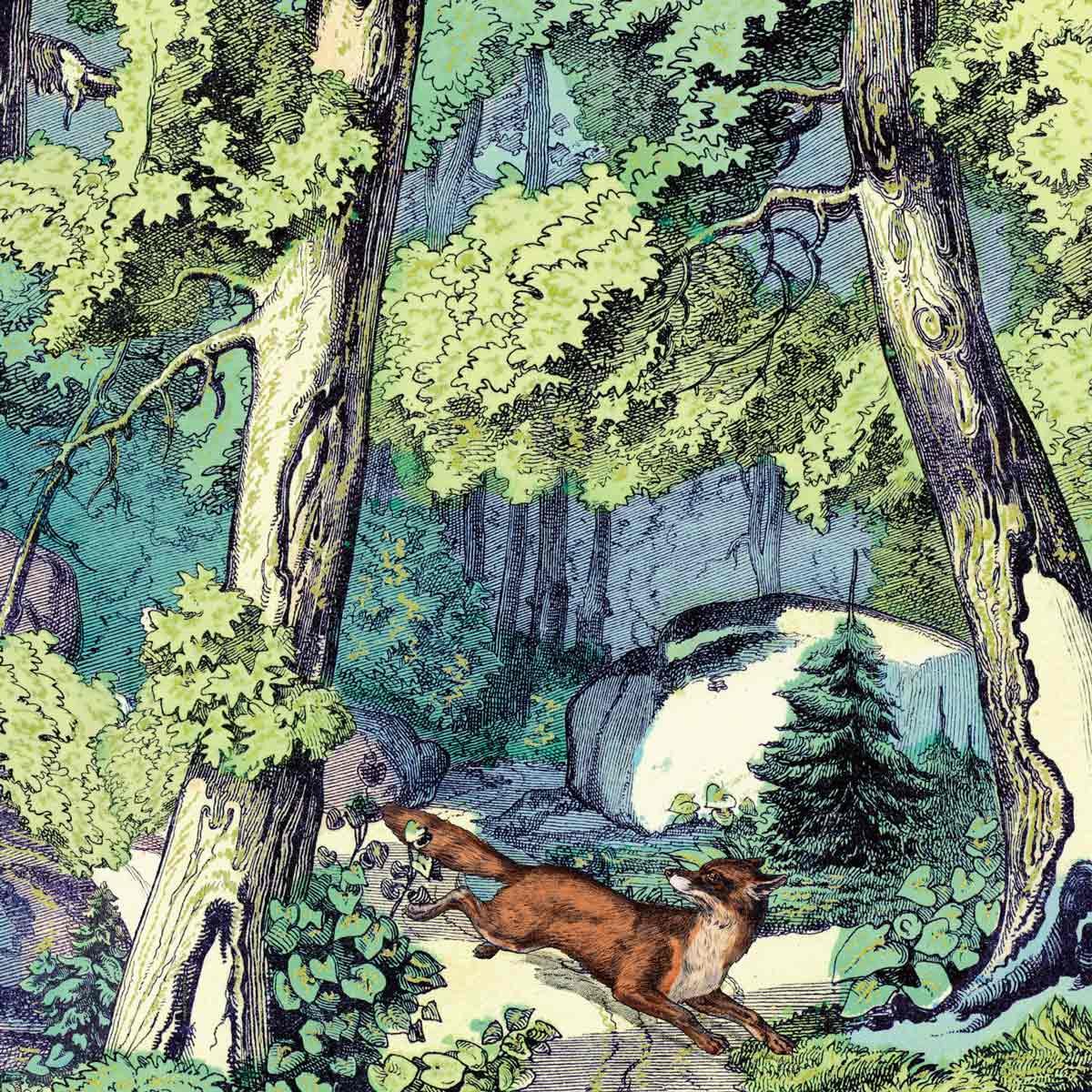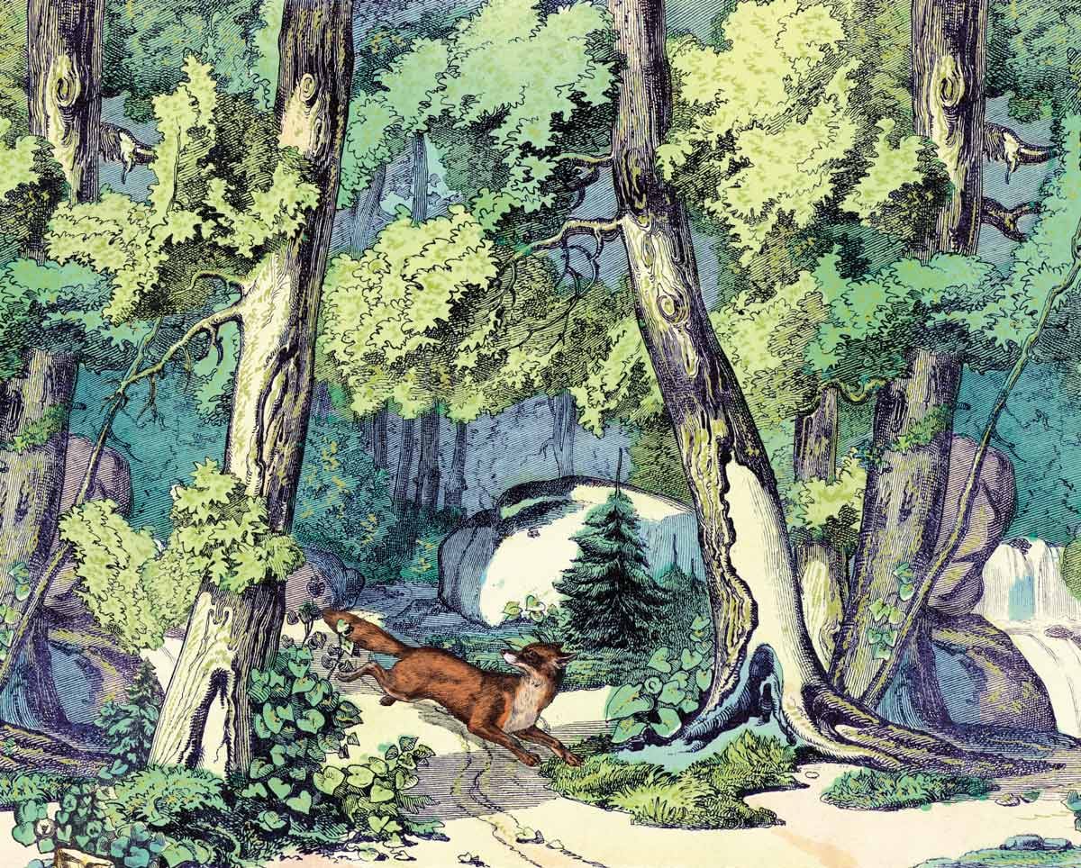Papier peint panoramique Fond de Forêt et Renard Maison Images d'Epinal
