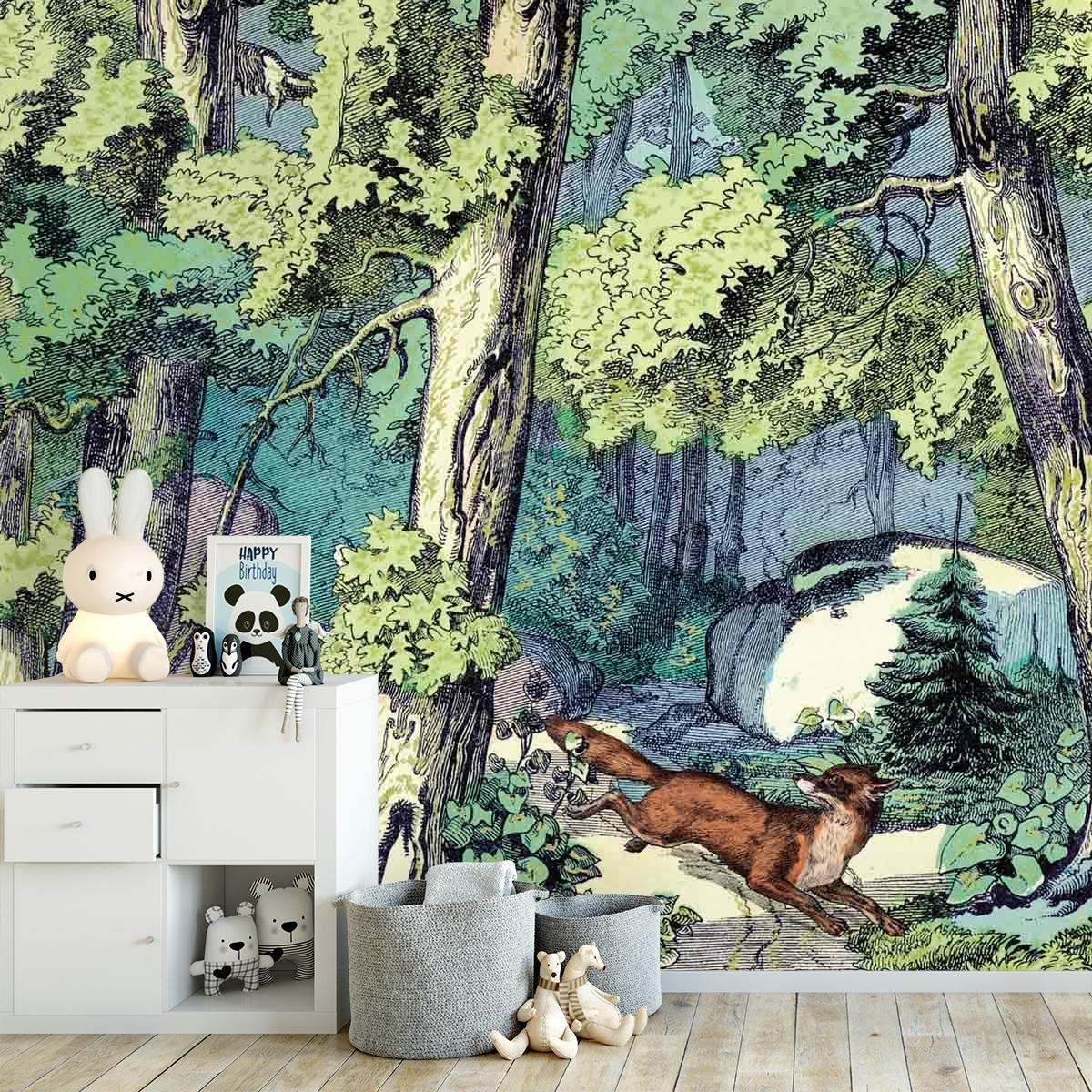 Papier peint panoramique Fond de Forêt et Renard Maison Images d'Epinal  Maison Images d'Epinal