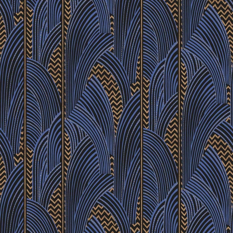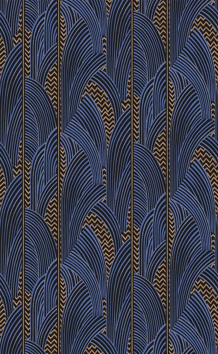 Comme un paravent, des rayures verticales ornées de figures curvilignes et des zigzags composent le motif du papier peint Indra de Masureel. Ce design bicolore adopte un choix de nuances vives et légèrement métalliques qui apportent un subtil jeu de contraste aux tracés. Cette décoration murale confère un style contemporain aux espaces de vie.