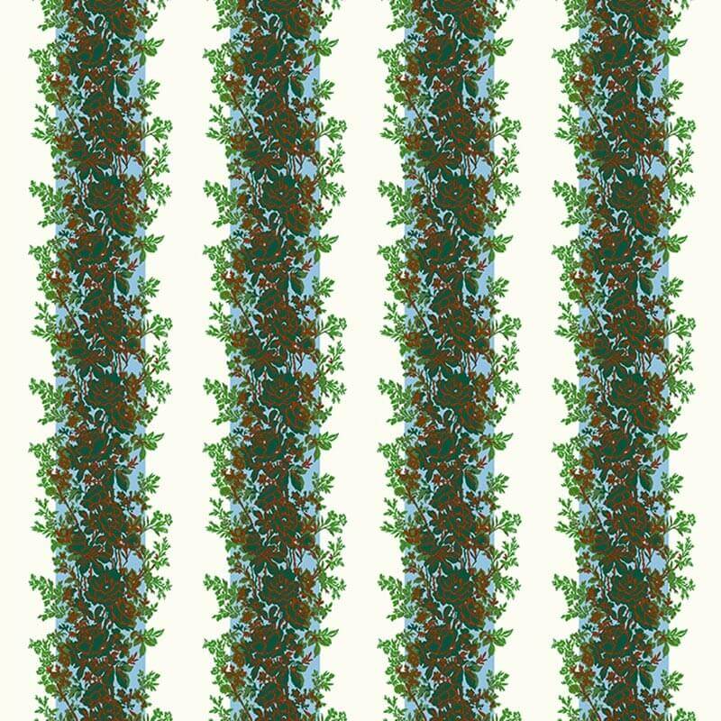 Le design végétal du décor panoramique Rayure Fleurie met en avant des bandes verticales multicolores. Elles présentent des dessins floraux composés de roses et de feuilles qui contrastent avec un fond uni clair. Cet ensemble édité pour Edmond Petit par l’artiste française Catherine Gran confère un style romantique et classique aux espaces de vie.