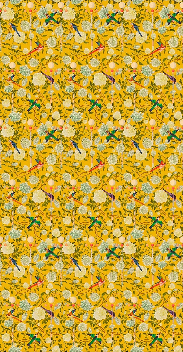 MINDTHEGAP s’inspire des vieux contes orientaux pour concevoir le design du panneau THE GARDEN OF IMMORTALITY. La création met en avant des fleurs en pleine floraison qui s’épanouissent sur leurs tiges feuillues. Des oiseaux colorés voltigent entre les plantes et les bibelots chinois qui composent ce motif floral évoquant la royauté et la sagesse éternelle.