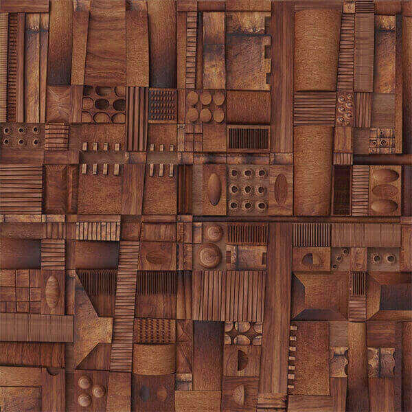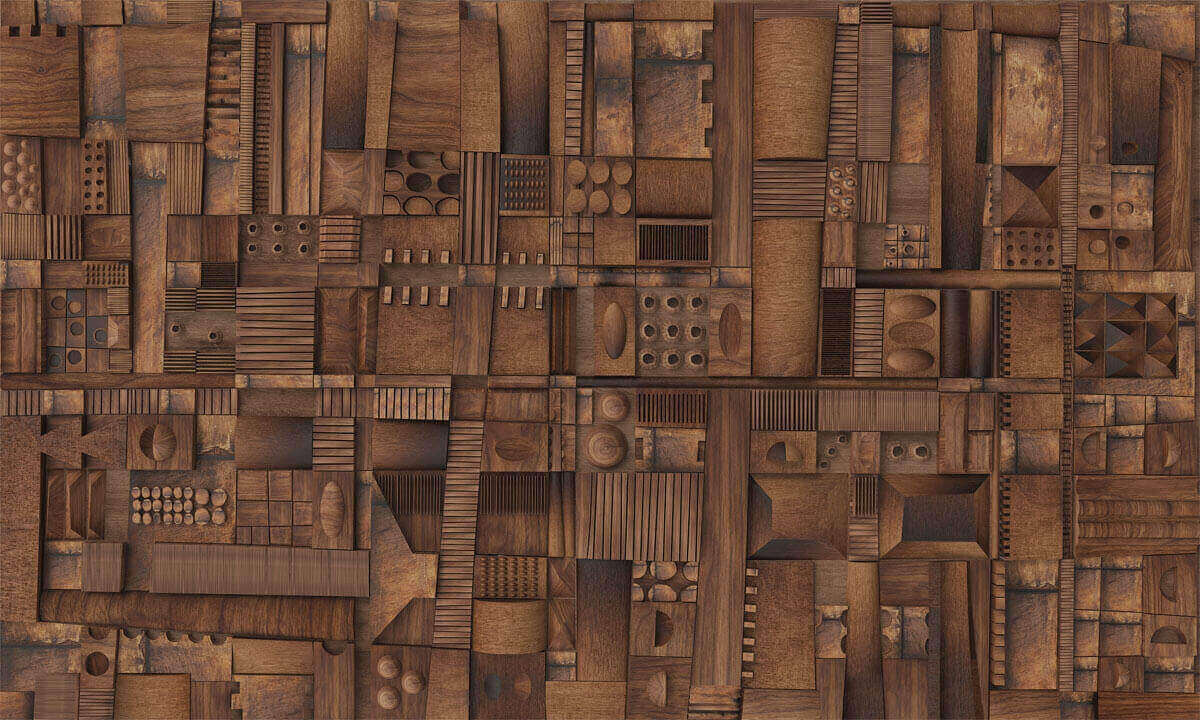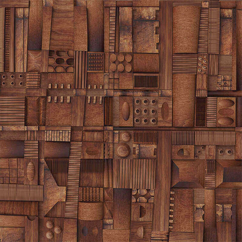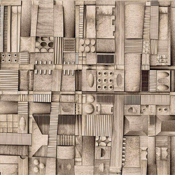 Inspiré par les œuvres des ébénistes marocains, le motif graphique du panneau Taracea met en avant des figures d’escaliers, des ovales et des pois encastrés. Ces éléments adoptent une palette de couleurs chaudes qui donnent aux tracés l’apparence du bois. Cette décoration murale signée Tres Tintas apporte une ambiance chaleureuse.