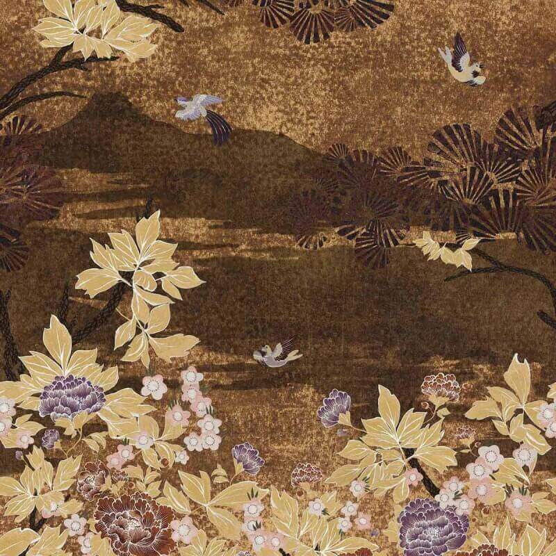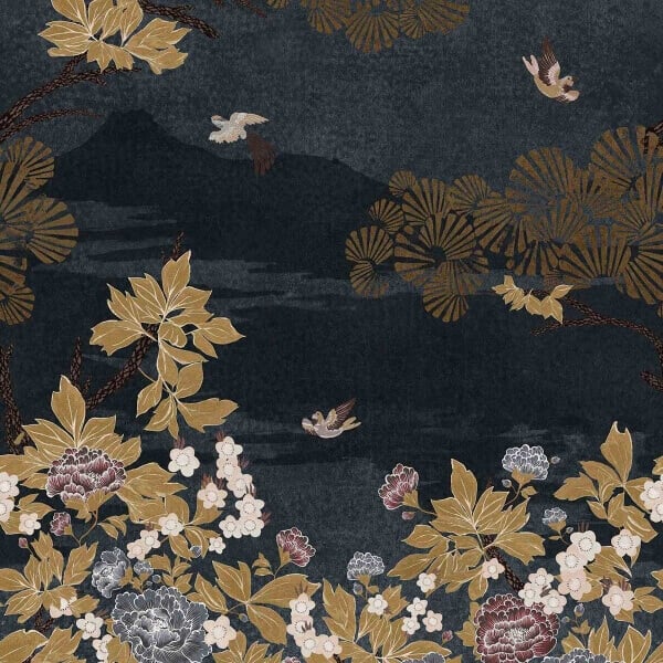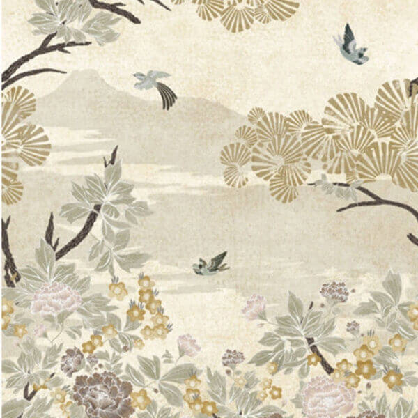 Nommé d’après une métropole japonaise, le design féérique du papier peint Kansai met en avant des oiseaux qui sont entourés de fleurs et de ramures luxuriantes. En arrière-plan, une montagne enveloppée de nuages et de brumes contraste avec les tracés et les couleurs de la végétation. Ce modèle de Casamance combine un style asiatique et romantique.