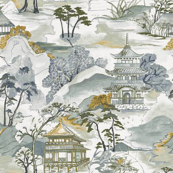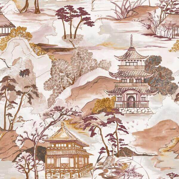 Casamance rend hommage à la culture asiatique à travers le papier peint Nara. Son design met en avant des pagodes entourées de montagnes et d’arbres feuillus. Ce paysage aux tracés élégants et fins se décline dans des couleurs chaudes et froides. Les nuances douces et vives de cette palette mettent l’accent sur les lignes du dessin, conférant un rendu authentique et mystique.