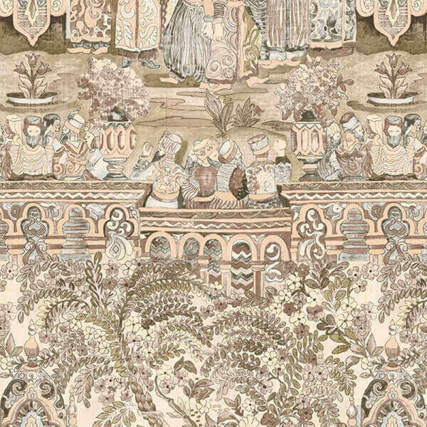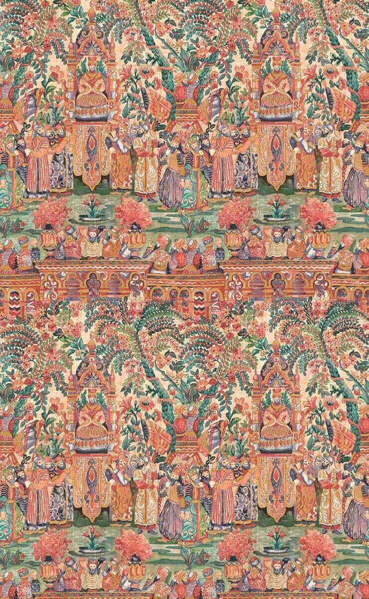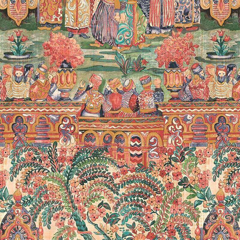 Inspiré de la soie fine, la texture du revêtement mural textile Emperador offre un support lisse, présentant une scène riche en couleurs de l’Empire ottoman. Ce modèle signé Arte met en avant des personnages sur un balcon et des palmiers dans des nuances vives. Ce choix de teintes donne une touche exotique aux espaces de vie.