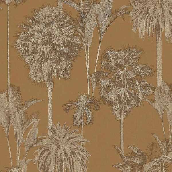Des palmiers et des cocotiers composent le motif du papier peint Wood Whisperer de Eijffinger. Dessinées avec des tracés fins, ces plantes exotiques arborent un aspect réaliste. Elles contrastent avec un fond uni qui se décline dans des nuances chaudes. Cette décoration murale confère une ambiance chaleureuse aux intérieurs.