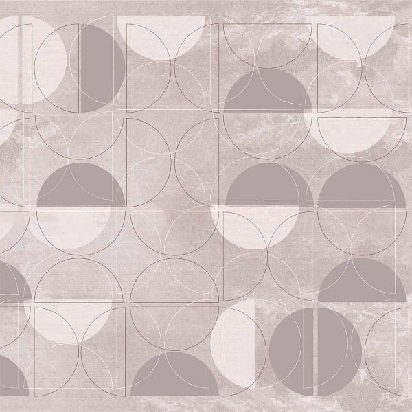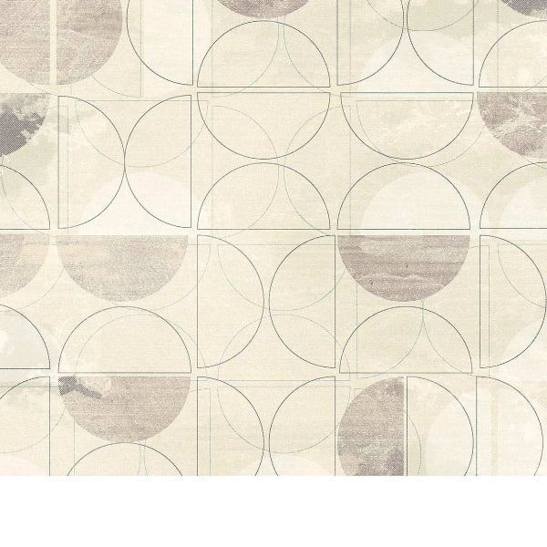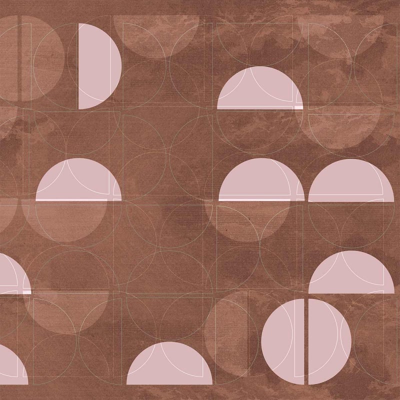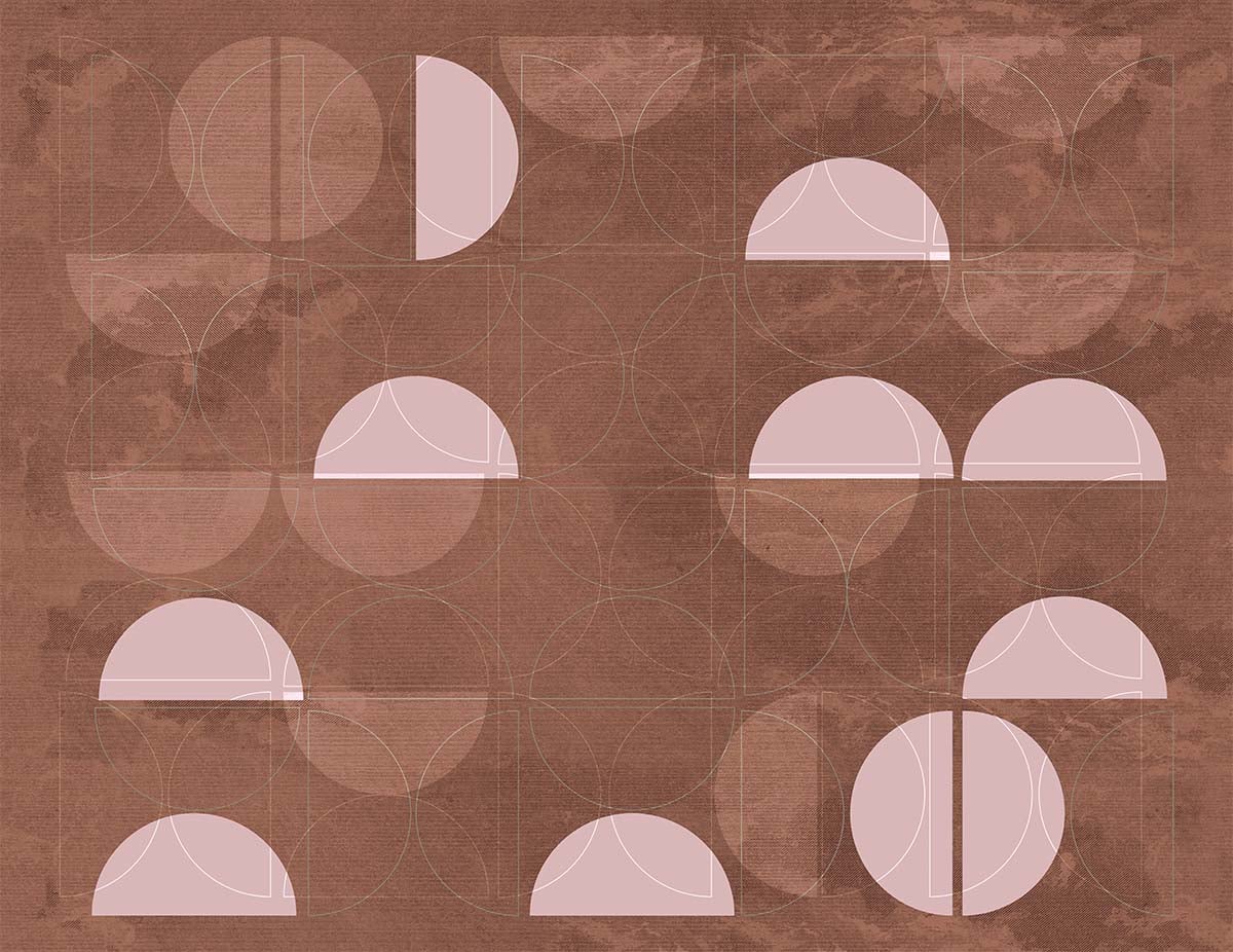 Le motif graphique du panneau  Donis de la maison Tres Tintas Barcelona représente des figures géométriques assemblées sur un fond légèrement dégradé. Ces formes alternent entre des demi-cercles unis ou tachetés tracés avec des lignes fines. Cette combinaison d’éléments installe une impression de profondeur aux espaces de vie.