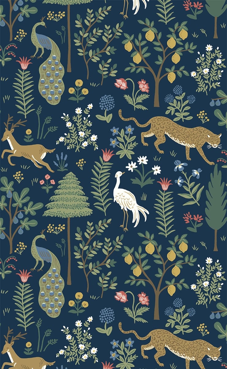 Menagerie est le papier peint iconique de cette collection Rifle and Co, et pour cause. Son style affirmé est marqué par la présence de paons, félins sauvages et grand gibier. Ce dessin est issu du travail d'artistes modernes du début du XXe siècle. Il met en scène des animaux dans une forêt plantée d'arbres fruitiers et de fleurs. Ce papier peint intissé est décliné dans des harmonies colorées riches et sophistiquées.