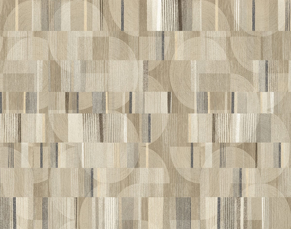 Ariadne fait défiler sur sa surface un design géométrique complexe, réalisé par un tissage de fils délicats. Le motif est constitué de cercles découpés dont les parties sont dispersées et accompagnées de rayures de tailles variées. Ce papier peint adopte des teintes douces et harmonisées, créant une ambiance rafraîchissante dans les intérieurs.