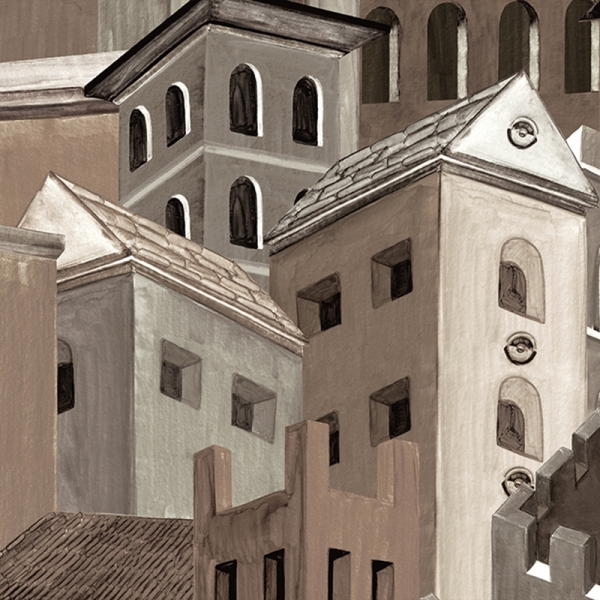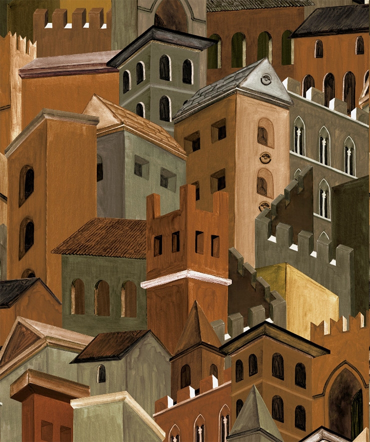 La ville de Città di Castello prête son nom au revêtement mural textile éponyme de Arte. Conçu avec une matière douce à l’aspect chenille, il affiche une vision panoramique des différents édifices qui composent cette cité. Ces éléments sont présentés avec un jeu de perspective, rappelant l’apparence d’un dessin fait à la main.