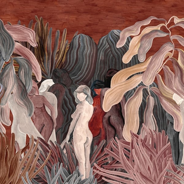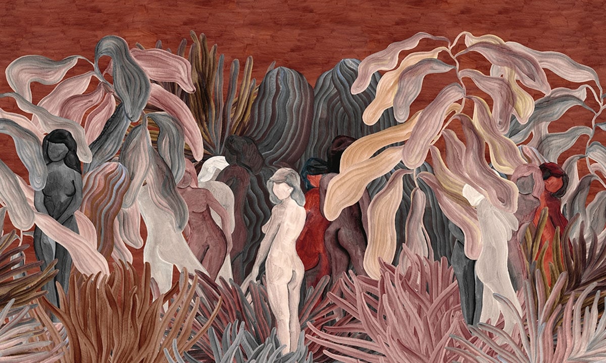 Arte propose un motif abstrait à travers le tissage multicolore du revêtement mural Secret Silhouettes. Cette parure murale textile est a une matière à l'aspect velouté. Elle affiche des personnages féminins entourés de figures ondulées qui rappellent l'aspect de larges feuilles. Les silhouettes arborent un effet d'estompage et de crayonnage léger, comme un dessin fait à la main.