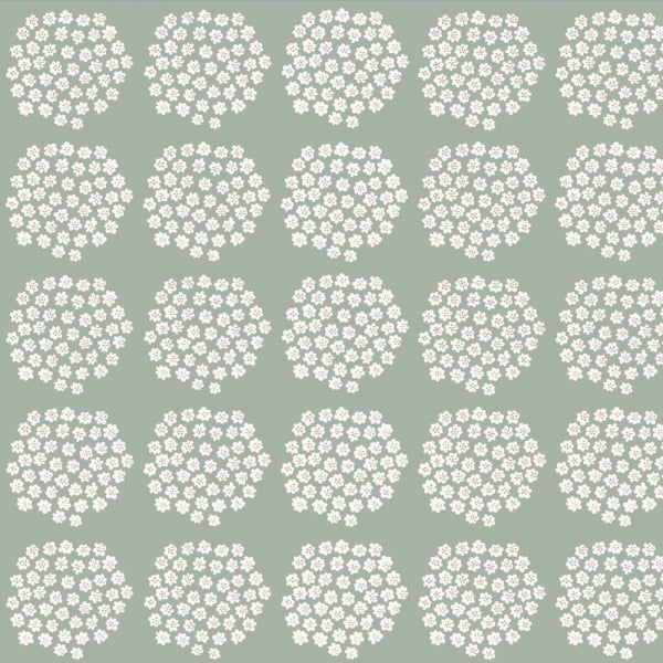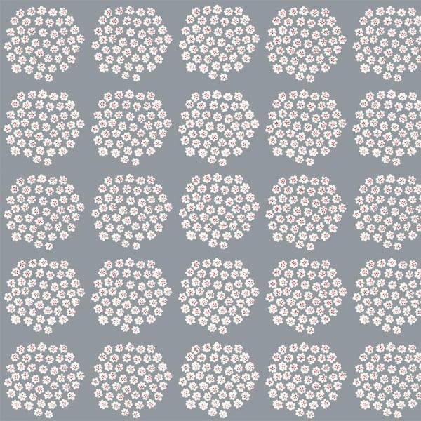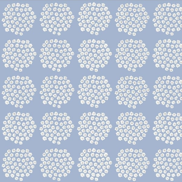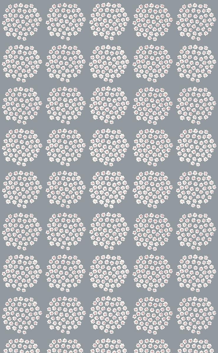 Des séries de parterres de fleurs claires composent le motif végétal du papier peint Puketti. Ils contrastent avec un fond uni de couleur froide. Cette décoration murale florale de Marimekko apporte une touche romantique aux intérieurs.