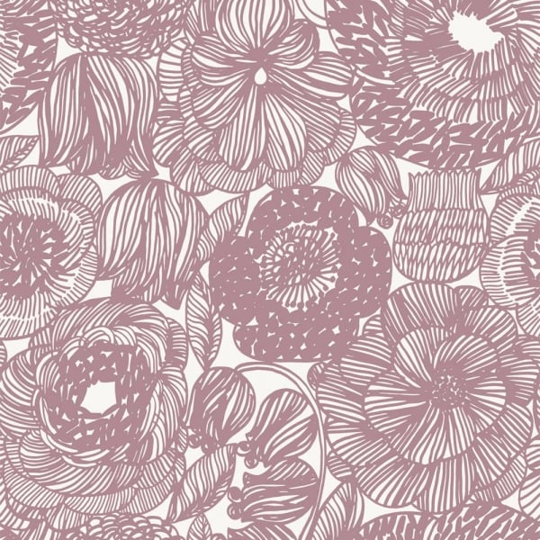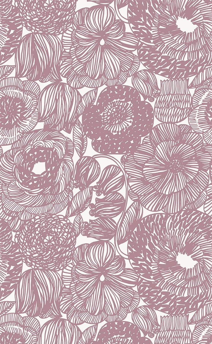 Dessinées sur un fond uni clair, des fleurs imaginaires tracées avec des lignes épaisses monochromes composent le motif du papier peint Kurjenpolvi. Cette décoration murale de Marimekko se décline dans des couleurs froides, sobres et chaudes. Elle invite un esprit romantique accentué d’une note de fantaisie dans les espaces de vie.