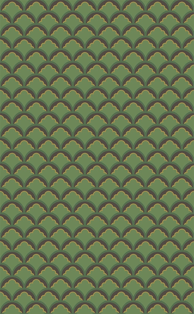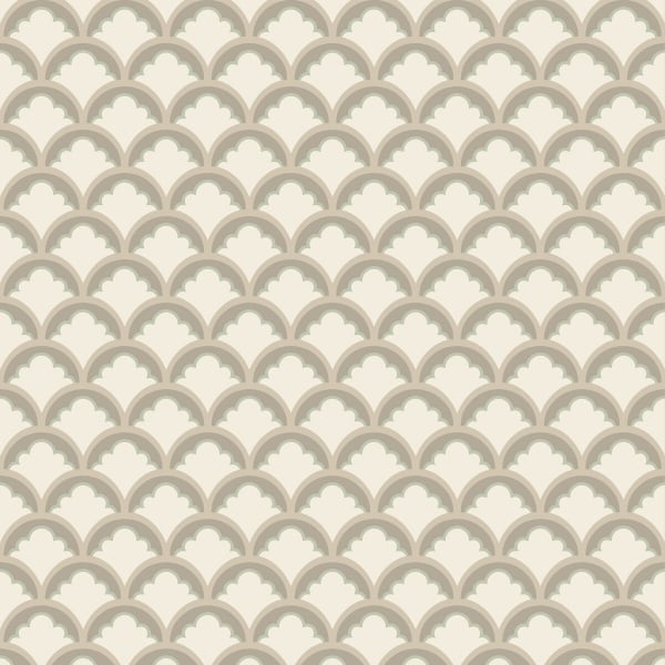 Comme des écailles de poisson, des figures curvilignes alignées à l’horizontale composent le motif du papier peint Mount Temple. Ces formes sont décorées de structures ondulées. Cette décoration murale contemporaine de GPJ Baker se décline dans des tons doux.