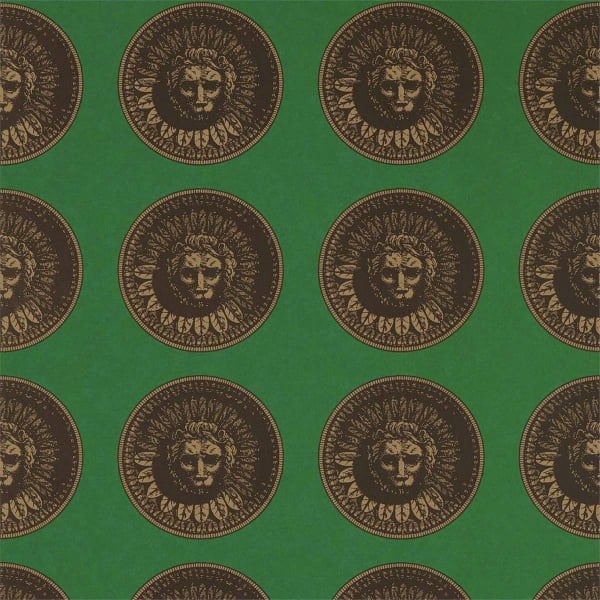 Le papier peint Medallion arbore un motif tridimensionnel formé par une succession de médaillons. Ces rondelles d’apparence gravée affichent un dessin de lion au style néoclassique. Elles se répètent sur un fond uni et ouvert, d’un ton vif et profond. Présenté par Zoffany, ce papier peint habille les murs d’une touche masculine.