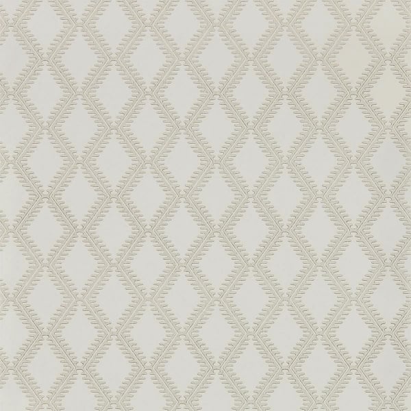 Le papier peint Witney met en avant un treillis de losanges avec un contour clair ou métallique. Le motif est imprimé sur un fond monochrome, accentuant le design graphique de l’ensemble. Cette création de la maison Sanderson peut être appréciée dans une nuance de couleurs sobres.