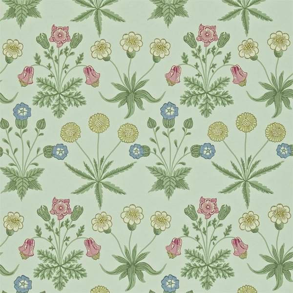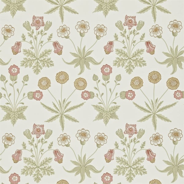 Daisy est l’inspiration médiévale proposée par Morris and Co. L’auteur de ce dessin l’imagine après avoir brodé des motifs de marguerites sur les teintures murales de sa maison, la Red house. De folles fleurs sont présentes sur ce papier peint au fond uni. C’est l’occasion d’opter pour une répétition tout en géométrie d’un motif fleuri.