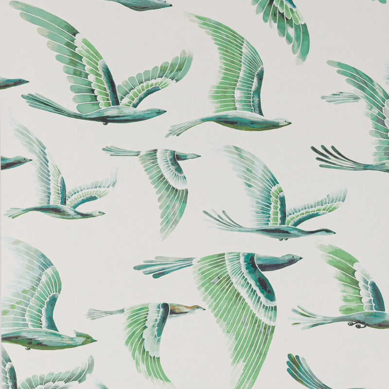 Manuel Canovas propose une surprenante représentation stylisée à grande échelle d’un vol d’oiseaux sauvages. Ce papier peint Hydra nous propulse entre ciel et terre. Grâce à son impression en héliogravure, toutes les nuances de tons des ailes de ses magnifiques voyageurs ont été conservées.