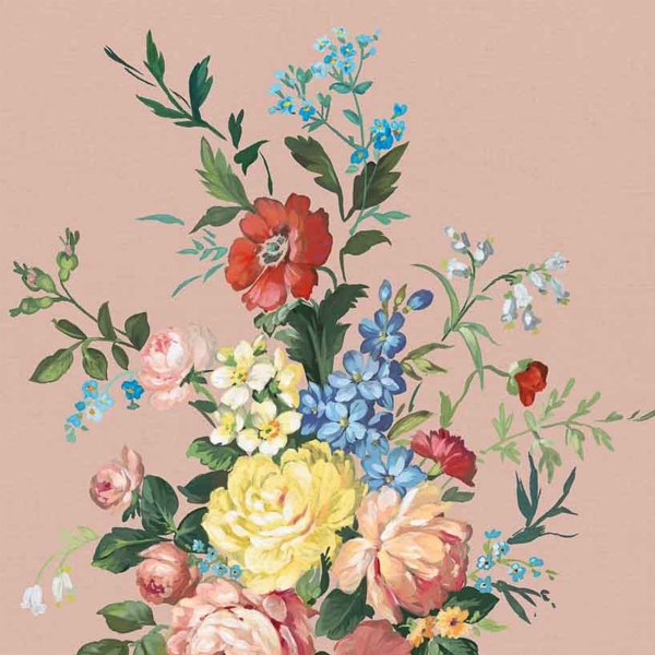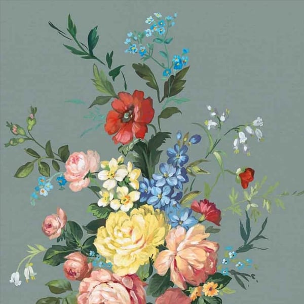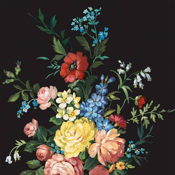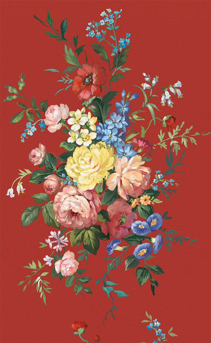 Dessiné telle une peinture classique, le motif de Carmen affiche un bouquet opulent de diverses fleurs. Ce papier peint réalisé par Coordonné affiche des coups de pinceau mats. Les pétales adoptent des nuances pastel, tandis que les feuilles arborent leur verdoyant naturel. La coloration profonde de l’arrière-plan est accompagnée d’un effet patiné à l’ancienne, donnant le point d’orgue au style champêtre.