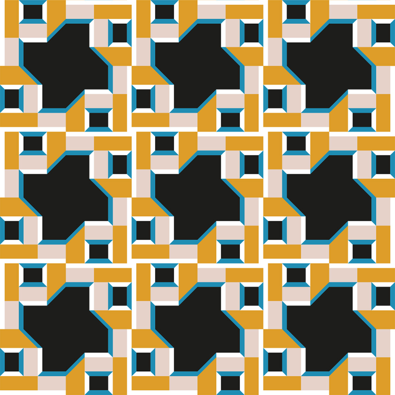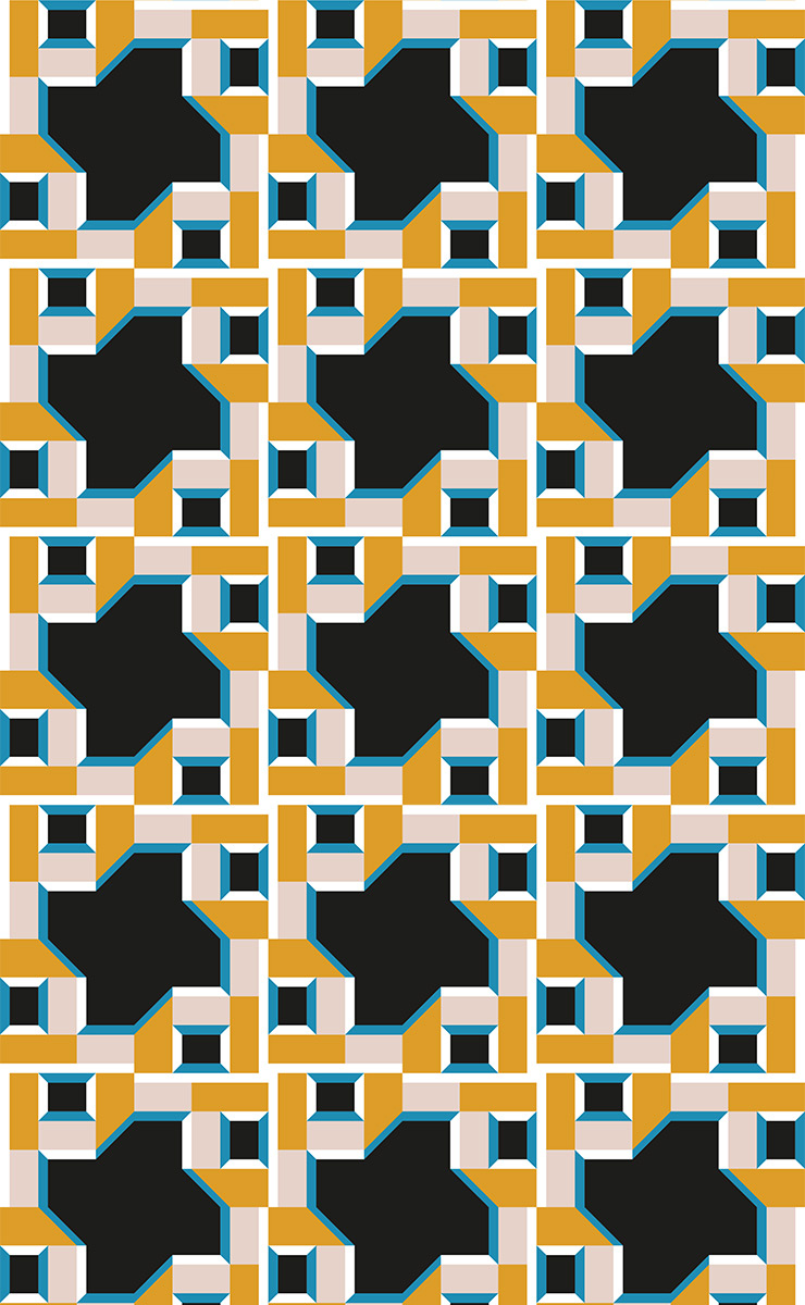 Ce papier peint intissé proposé par Coralie Prévert représente une répétition de formes où la géométrie se joue de notre imagination. En effet, le contraste émis par les couleurs ainsi que son imposant motif ne cesse de nous hypnotiser. La présence de quelques touches de vernis confère à Parma son aspect élégant et design.