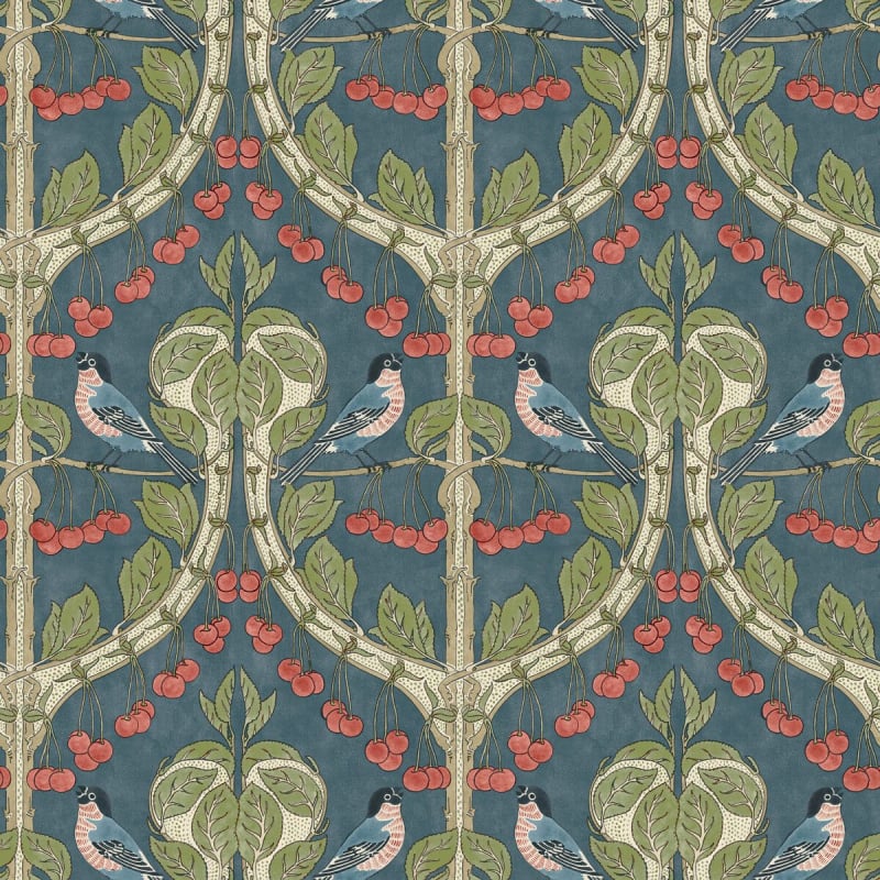 De charmants oiseaux viennent picorer d'appétissantes cerises sur cette proposition de GP & J Baker. Ce dessin, acheté par Georges Percival en Baker en 1897, arbore un fascinant motif tout en symétrie. Birds and Cherries est une magnifique illustration du mouvement Arts and Craft. Ce papier peint est l’occasion de donner une note contemporaine à chaque intérieur.