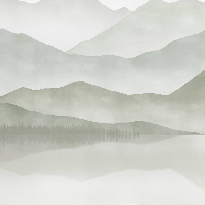 Signé Les Dominotiers, le décor mural Green Lake dépeint un paysage panoramique aux tons calmes. À travers une illustration presque abstraite, il dévoile une chaîne de montagnes surplombant un lac scintillant. À l’instar des montagnes, la forêt de sapins longeant la rive voit son ombre reflétée dans l’eau. Réalisé dans un jeu de nuances vertes, ce dessin camaïeu arbore un effet aquarelle.